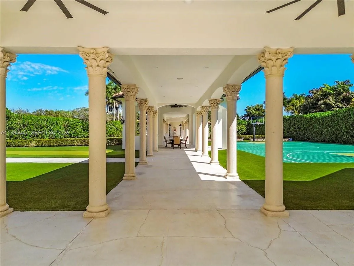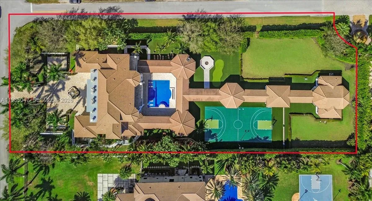 Located within the gated community of Landmark Estates, this newly remodeled 2.2-acre compound offers the ultimate in privacy and resort-style living. Designed for entertaining, the grounds feature a putting green, campfire area, and an NBA regulation basketball court. The estate includes two fully separate guest houses, each complete with full kitchens and living areas—ideal for guests or extended family. Outdoor living is elevated with fully equipped summer kitchens featuring commercial-grade refrigeration, sinks, dishwasher, bar, hibachi, smokers, and grills.rnThe main residence offers 7 bedrooms and 8.5 bathrooms with an expansive and functional layout. A spacious primary suite is located on the main level connecting to once a home gym or huge room for a nursery and a large private office Master features 2 expansive walk in closets, sitting area, fireplace, and wet bar. Upstairs includes five additional bedrooms, a large recreational room with sitting area and fireplace, and a room for a home theater. Kitchen just remodeled with Taj Mahal marble and large eat in area that overlooks resort size pool. Connecting to kitchen is formal dining room and expansive family room that flows perfectly for family gatherings. Wet bar in living room that also leads out to entertainers backyard. All upgraded bathrooms feature designer Taj Mahal Marble. A circular driveway with flowing fountain and 4-car garage provide ample parking, completing this exceptional property. Must See!