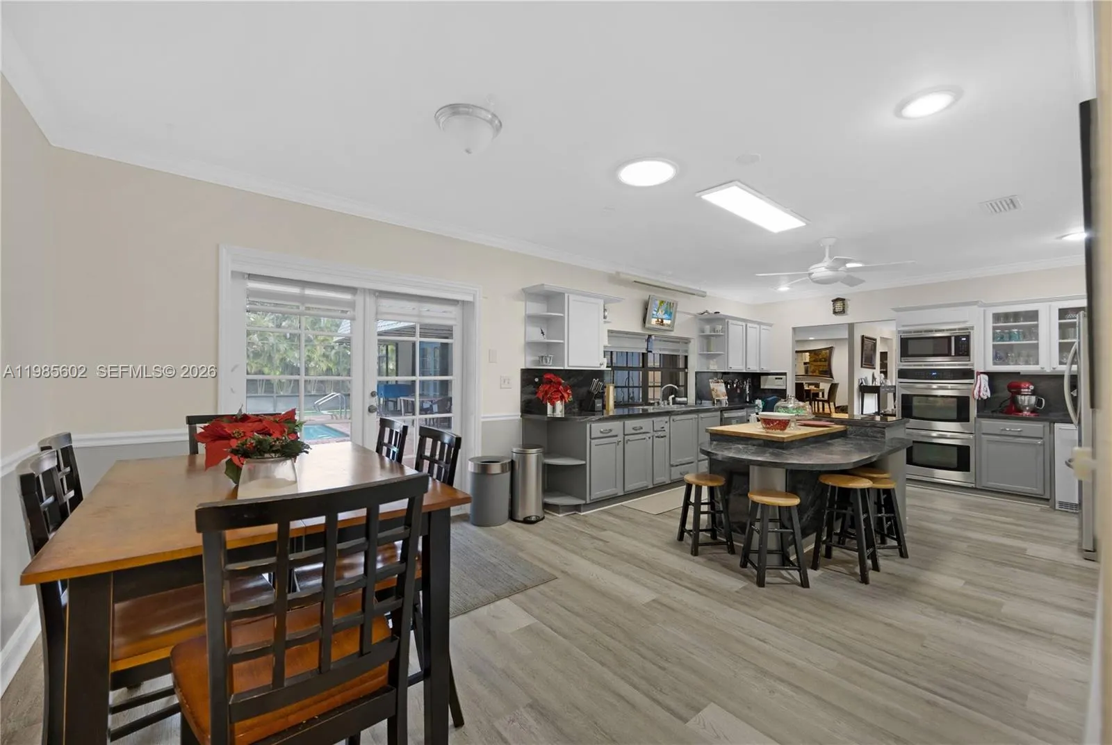 Tucked away at the end of a quiet cul-de-sac, this 5BR/3.5BA pool home offers over 3,500 sq ft of privacy on nearly half an acre with no HOA. The flexible tri-split floor plan features a primary suite with a newly remodeled spa-bath and a remodeled half bath. The chef’s kitchen has been upgraded and is ready for entertaining, with a new double oven, microwave, and wine fridge, plus a large pantry and cooking island. Recent updates include a resurfaced pool (2024), a full water filtration system (2024), and leased solar panels that significantly reduce the monthly electric bill, a huge plus for a home this size. Outside, enjoy a screened pool, summer kitchen bar, and enough room for a boat or RV. How often do you see this much space and modern efficiency in Homestead without the HOA restrictions. Easy to show and ready for its next chapter.