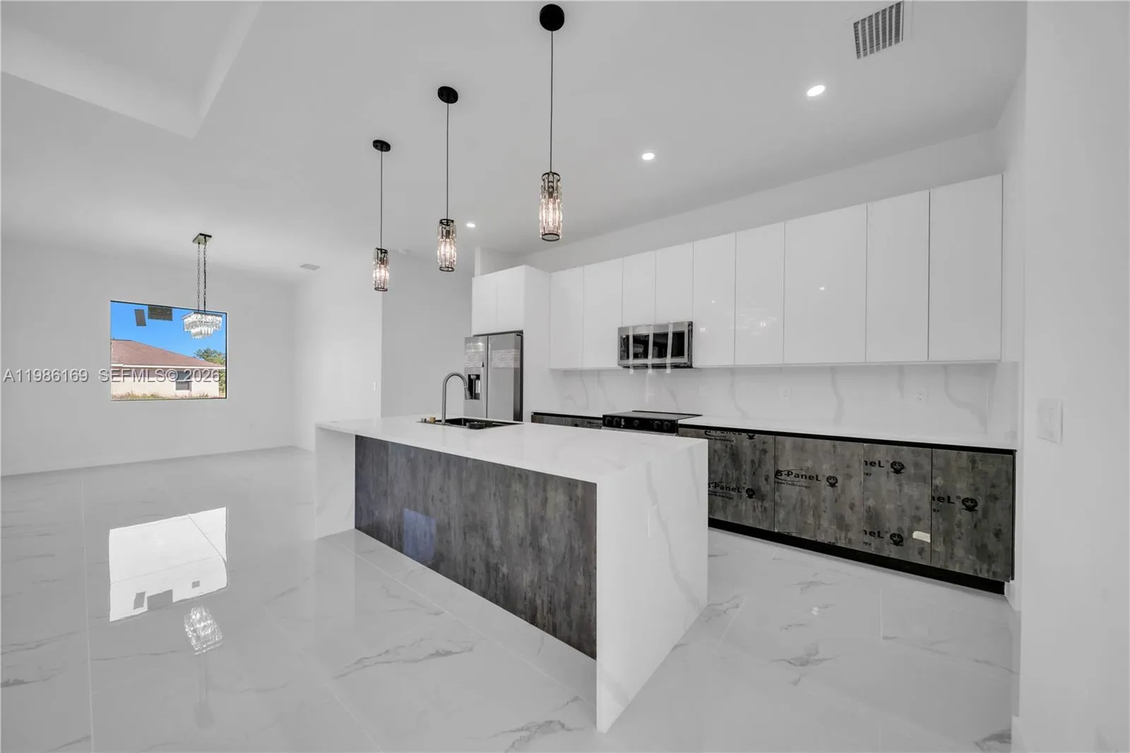 Amazing opportunity to own this new construction in a prime Lehigh Acres location! This meticulously designed 3-bedroom, 2-bathroom home plus DEN features high ceilings, porcelain tile throughout, modern lighting fixtures, and a gourmet kitchen with a waterfall island and high-end appliances. Additional highlights include impact windows and doors, a 2-car garage, and an expansive lanai perfect for entertaining. This property won’t last. Schedule your showing today!