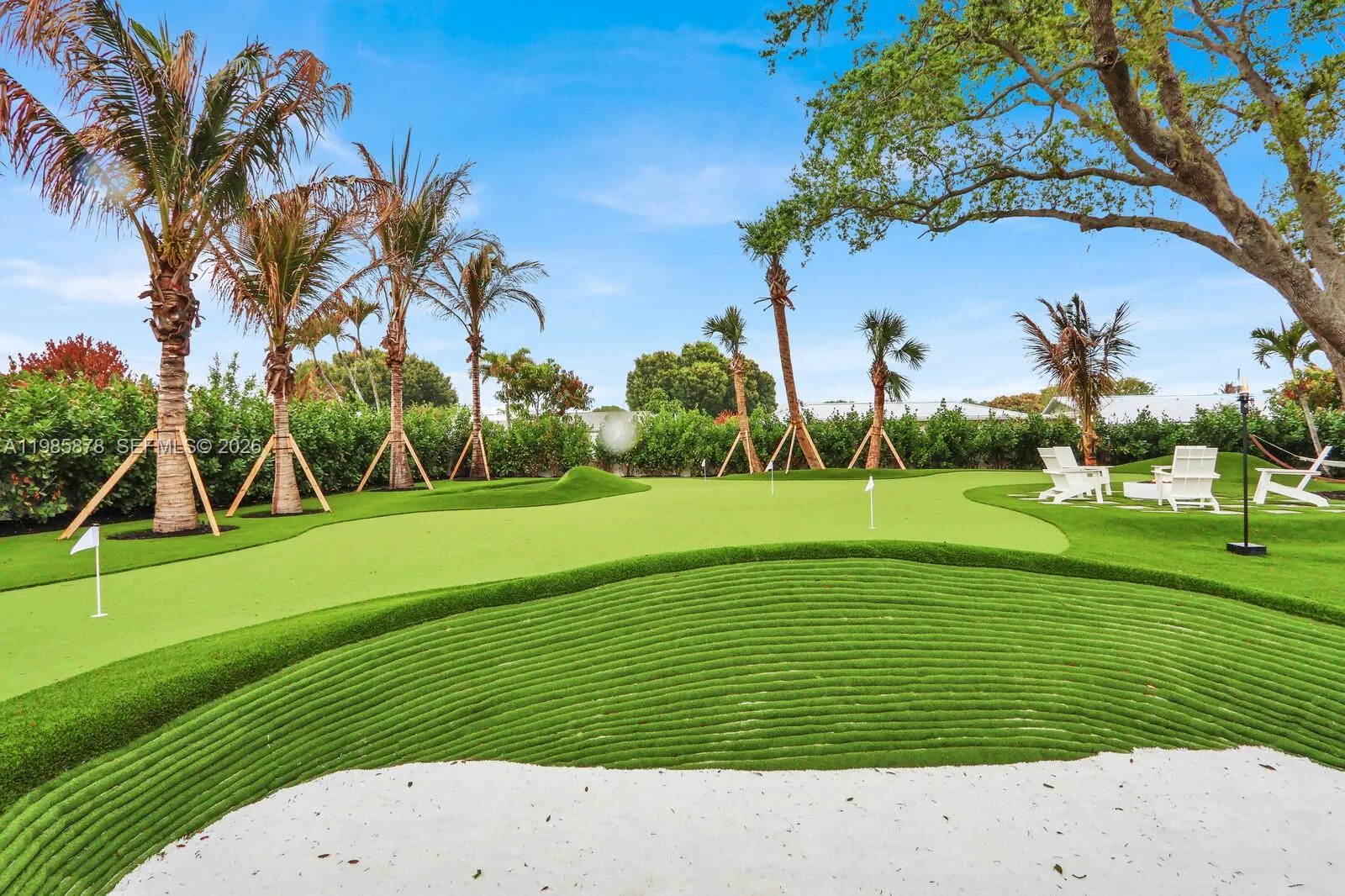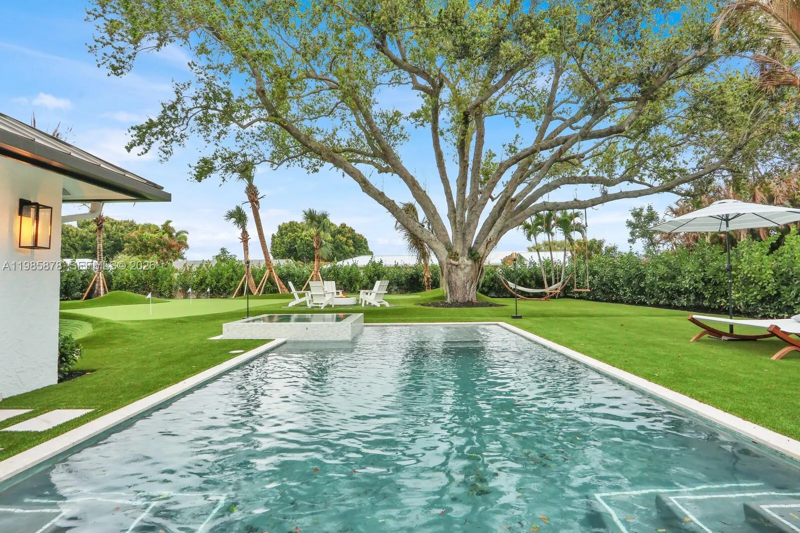 Interior designer completely rebuilt and re-imagined luxury modern coastal residence on a rare half acre lot beneath mature live oaks. Resort-style backyard is one of a kind, showcasing a century-old oak tree, a custom brand new heated pool/spa, summer kitchen with DSC grill, Zephyr hood, and lanai overlooking a professional grade putting/chipping green anchored by two Scottish-style revetted bunkers. Wonderful, thoughtfully designed open floor plan with high end finishes – Subzero/Wolf chef’s kitchen, gorgeous wide plank white oak porcelain floors from Portugal, and more. The primary suite offers a tranquil retreat with a spa-inspired bath and fully customized walk-in closets. Gated Turtle Creek golf community (membership optional). Unparalleled privacy in a golf setting. Minutes to Jupiter beaches, golf clubs, and waterfront dining. Enjoy peaceful evenings by the fire pit, relax in the hammock or unwind on the swings beneath the magnificent oak tree. This luxury home is all about peace, tranquility, privacy, and entertaining your friends. Move in ready (can be purchased turnkey furnished).