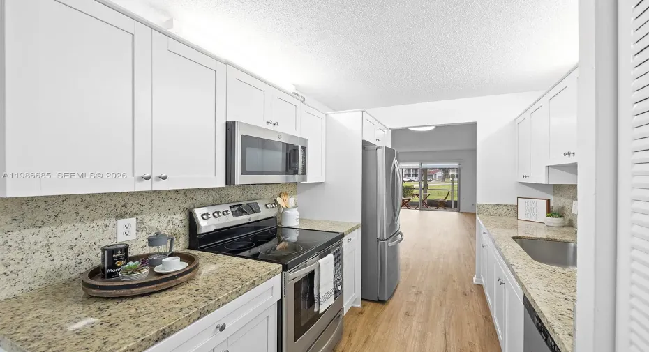 Beautiful 2/2 condo in Century Village, Pembroke Pines. This stunning first-floor unit offers ultimate convenience, just steps from the second entrance and community pool. Features include vinyl flooring throughout and a kitchen with stainless steel appliances. This condo is move-in ready! Enjoy spacious rooms with walk-in closets in both bedrooms and LED lighting throughout for a modern touch. Washer and dryer in unit. Century Village is a 55+ resort-style community offering incredible amenities, including a clubhouse, state-of-the-art fitness center, multiple pools, golf course, tennis courts, pickleball, theater, free shuttle service, 24/7 security, and more. Conveniently located near shopping, dining, and major highways.