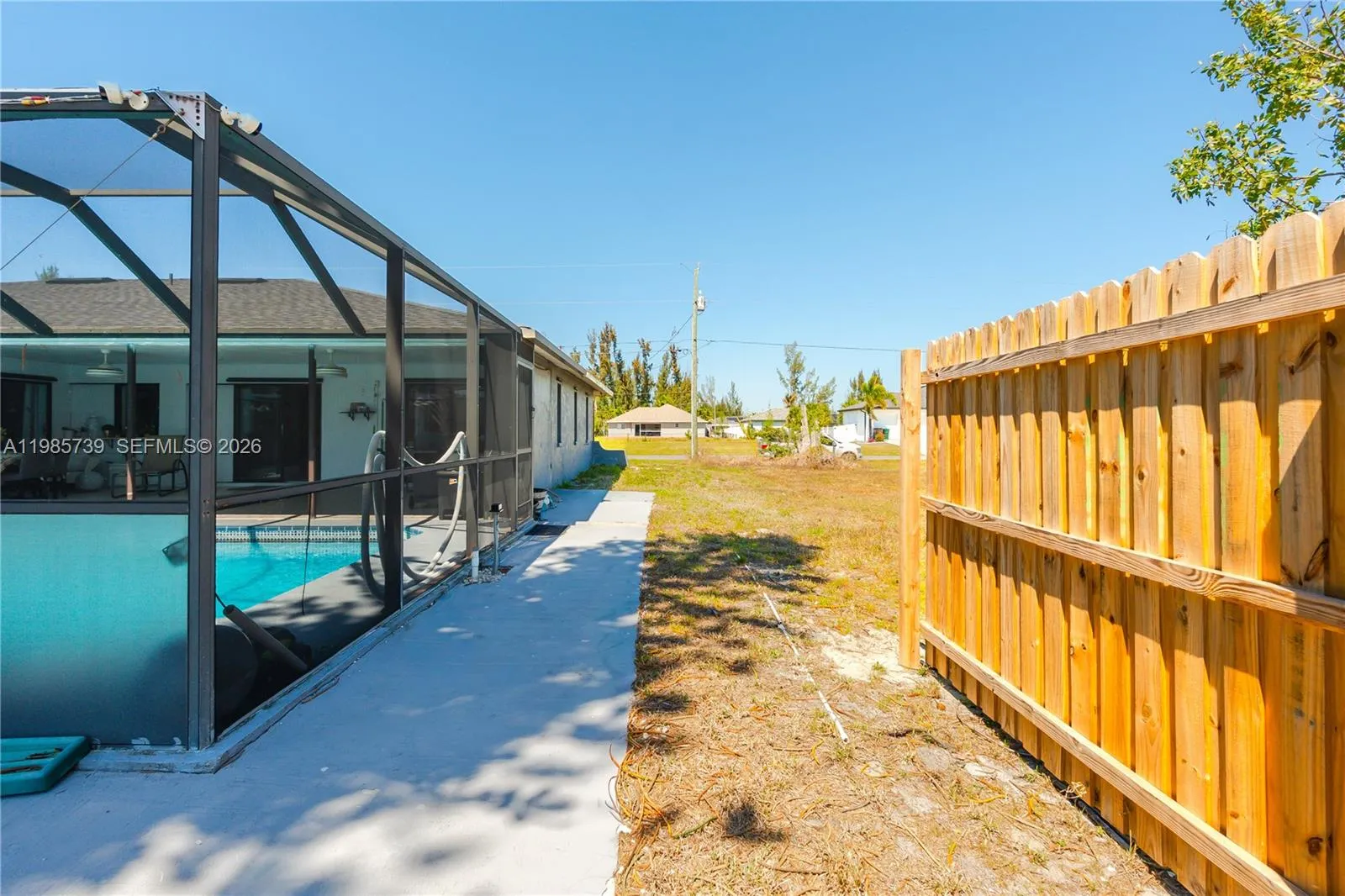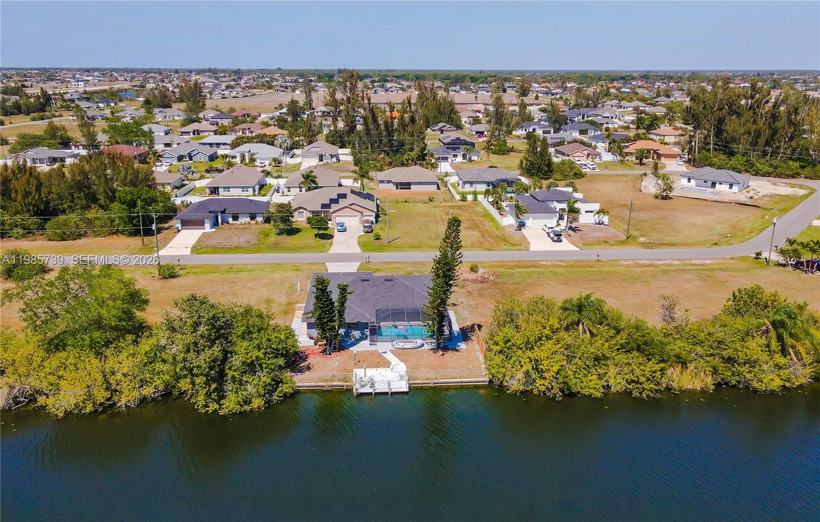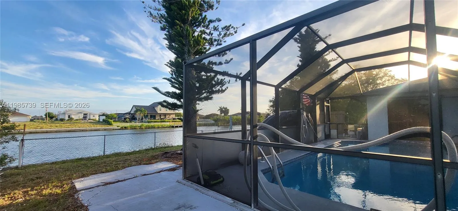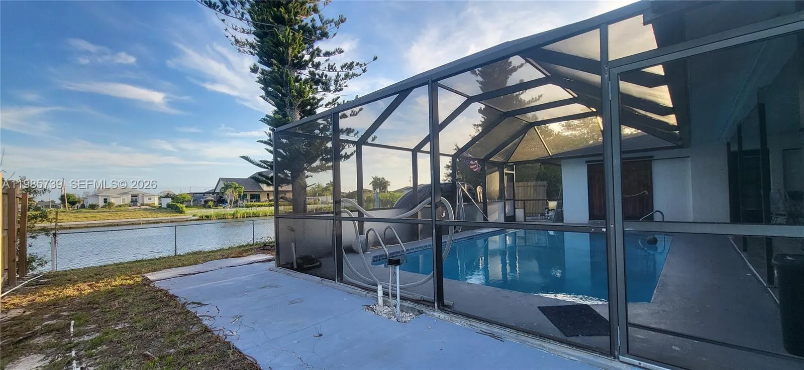 Spectacular Property in Cape Coral. DIRECT ACCESS TO A WIDE, OPEN, AND NAVIGABLE CANAL. The view is open and unobstructed toward the canal, creating a sense of spaciousness, tranquility, and constant connection with the water environment. From the home, you enjoy a panoramic view of the canal. The canal is wide, allowing for comfortable and recreational boating, reinforcing the waterfront lifestyle. The presence of the water just steps away from the pool makes the outdoor area an ideal space for relaxation, entertainment, and outdoor living.rnThe property includes a SCREENED-IN POOL, spacious and functional, within a covered lanai that allows year-round outdoor enjoyment with shade and protection. The pool and lanai area are directly integrated with the canal views. The home is a single-story residence with 3 bedrooms and 2 bathrooms, featuring visual connection to the outdoor area and the canal. 2,354 sqft