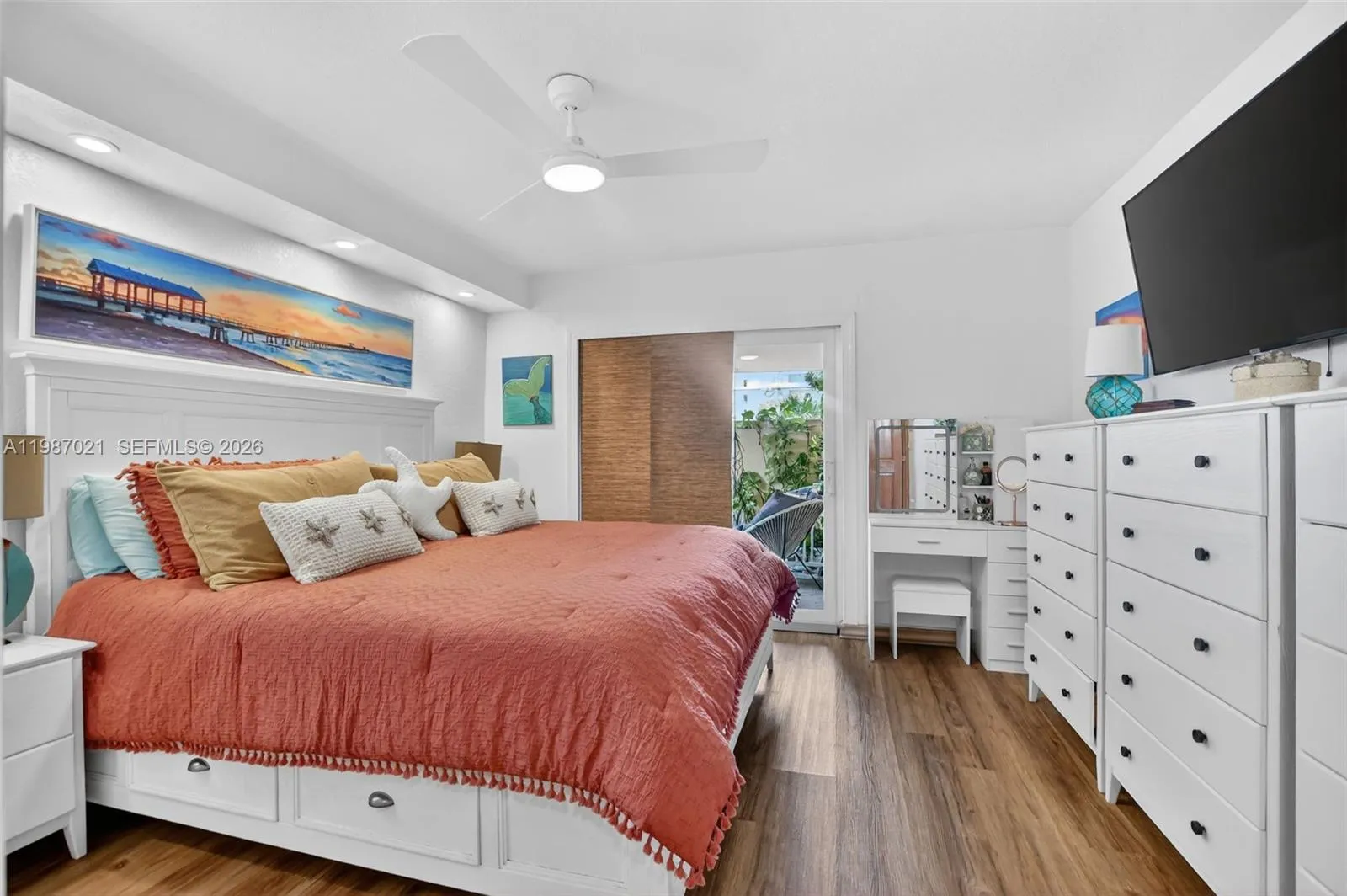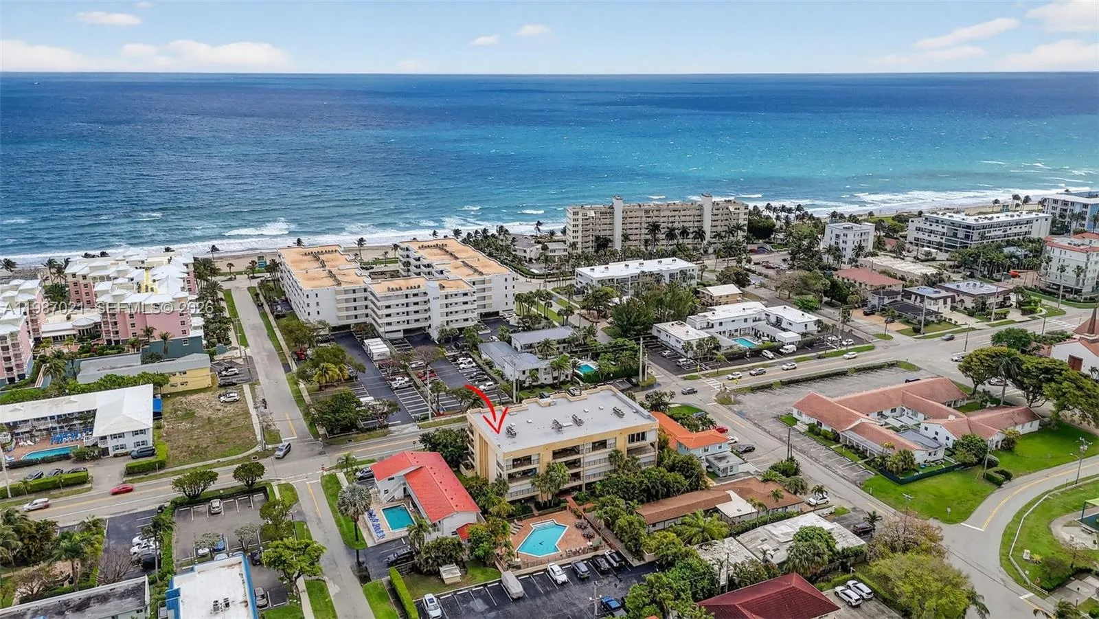 Ultra rare ground floor Villa at the Beach House, Deerfield Beach. The Beach House is a small Boutique Building of only 14 Residences. Pet Friendly. This villa is one of two units on the ground floor, with direct access to the brand new heated community pool, just redone this year, right out of your expansive rear porch. Almost like the pool was built for this villa! The home has a private entrance as well and opens to a beautiful foyer. Inside everything has been updated. 40 LED high hats provide excellent, modern lighting. Open Floor plan kitchen, living room & dining. Kitchen and Baths both done with high end quartzite and waterfall edges. Washer and Dryer inside, plus a community commercial washer and dryer that residents can use free of charge on the 1st floor. Appliances are only 4 years old. A/C is 3 years. The primary room features a ensuite bath, large walk in closet and a additional exterior outdoor patio! Custom office nook built into 2nd bedroom with doors that open to living room or lock for privacy. 2 Assigned Parking Spaces! 2 exterior storage units (one climate controlled). Impact Windows and Doors. Building is in superb condition. The 40yr is completed and all assessments are paid. Sirs is fully funded. Roof redone 2025. Budget is perfect and the HOA fees are only $650/Mth! Location is hard to beat, walking distance (1 block) to the ocean and deerfield beach plus all the restaurants and activities they offer. HOA includes pool, landscape & ext maintenance.