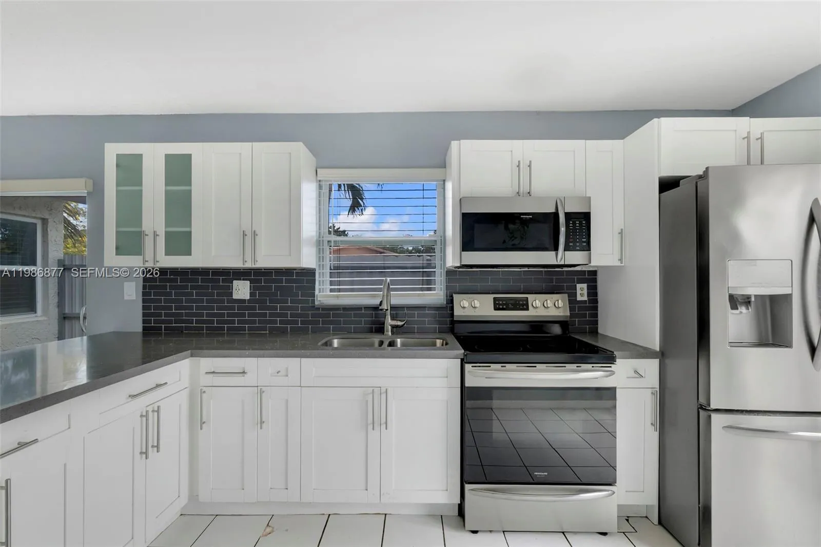 Beautifully updated 2-bedroom, 2-bath home situated on a desirable corner lot with a fully fenced yard—perfect for privacy and outdoor enjoyment. This move-in ready property features impact windows and doors, tile flooring throughout, and a remodeled kitchen with modern quartz countertops and stainless steel appliances. A separate laundry room adds convenience and functionality. Major updates include a 2023 A/C, 2019 water heater. Ideally located directly across from FIU and just minutes from major highways, shopping, and dining options. A fantastic opportunity in a highly sought-after area!
