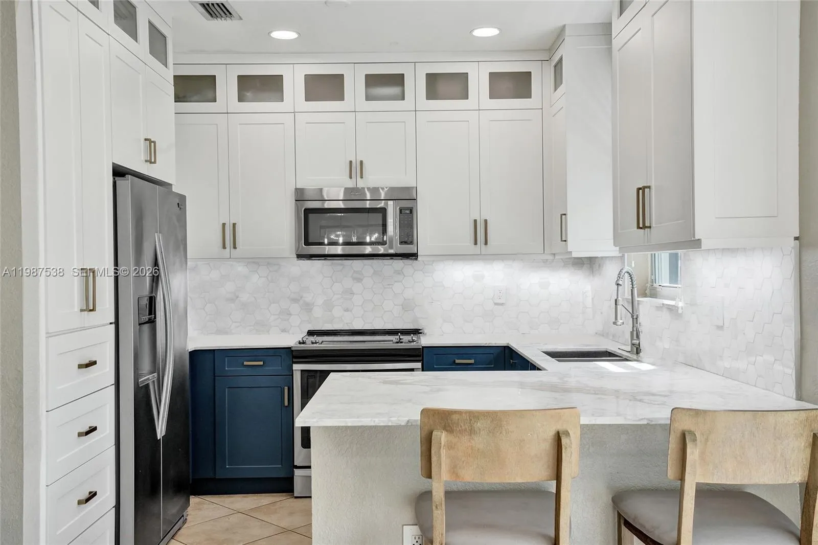 Completely reimagined and truly turn-key, this meticulously upgraded townhouse in Kendall Breeze. Featuring impact windows and doors, this home offers both peace of mind and energy efficiency. The interior showcases high-end finishes throughout, including a stunning kitchen with quartzite countertops and custom cabinetry, along with three fully renovated bathrooms and custom vanities. Thoughtful design meets everyday functionality with a built-in library framing the entry living space, as well as custom closets throughout the home maximizing storage and organization. The primary suite features a highly functional, boutique-style closet system designed for optimal use.The main level is finished with sleek porcelain tile, while the upper level offers a low-maintenance flooring throughout. This home is also equipped with smart home technology, including Alexa-controlled lighting and app-enabled locks and garage access. Step outside to a spacious brick paver terrace with no rear neighbors — a rare level of privacy — all situated on one of the quietest corner locations within Kendall Breeze. Major systems have already been taken care of, including a newer A/C (2020) and a brand new roof (2025). Residents enjoy access to three community pools, a fitness center, and roaming security, with alarm monitoring included in the HOA. This home has been thoughtfully updated as a primary residence and offers a level of quality, care, and finish that is immediately apparent.