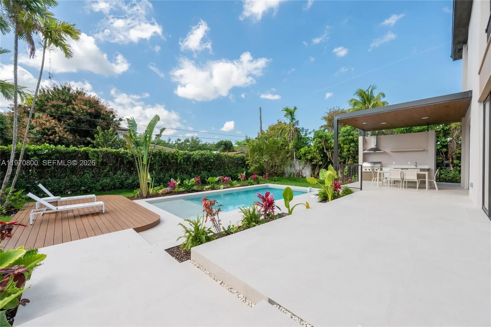 New construction two-story single-family home featuring 5 bedrooms and 6 bathrooms, offering 3,904 SF of living space and a two-car garage. Built with concrete block construction, 9′ ceilings on both floors, and high-impact windows. The home features a gourmet Italian kitchen with Pompei Quartz countertops and backsplash, Sub-Zero/Wolf appliances, 24″ x 48″ porcelain tile flooring, and refined finishes throughout. All bedrooms include en-suite baths, highlighted by a luxurious primary suite. Enjoy a covered terrace, 44” Bull summer kitchen, outdoor shower, and a sleek 8.5’ x 31’ pool ideal for entertaining. Conveniently located minutes from Coral Gables, Coconut Grove, Brickell, and major highways.