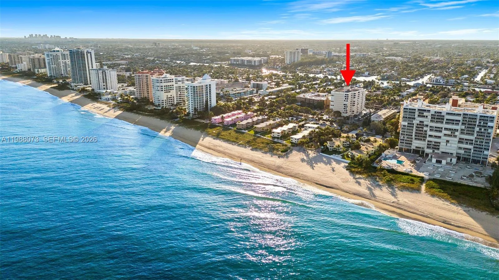 Enjoy the best of South Florida beach living at Emerald Tower, a well-maintained condo offering intercostal access and PRIVATE BEACH ACCESS to El Mar Beach Club directly across the street! The building has completed all milestone inspections and has been renovated throughout. With Northeast exposure, you can bask in the morning sun and enjoy incredible views of the ocean and intercostal from your wraparound balcony. This large 2 bedroom/2bathroom PLUS EXTRA ROOM (currently used as a 3rd bedroom) features full impact windows and doors (2019), newer high-end engineered European laminate flooring, updated bathrooms, water heater (2024), and brand new water filtration system. The modern kitchen has plenty of of storage, spacious living and dining room area, oversized closets, washer/dryer hook-up, 1 covered parking spot, and additional storage on the same floor! The primary suite has the perfect nook for a home-office! The building has a heated pool, gym, billiards room, recreational room for large gatherings and events, and plenty more!