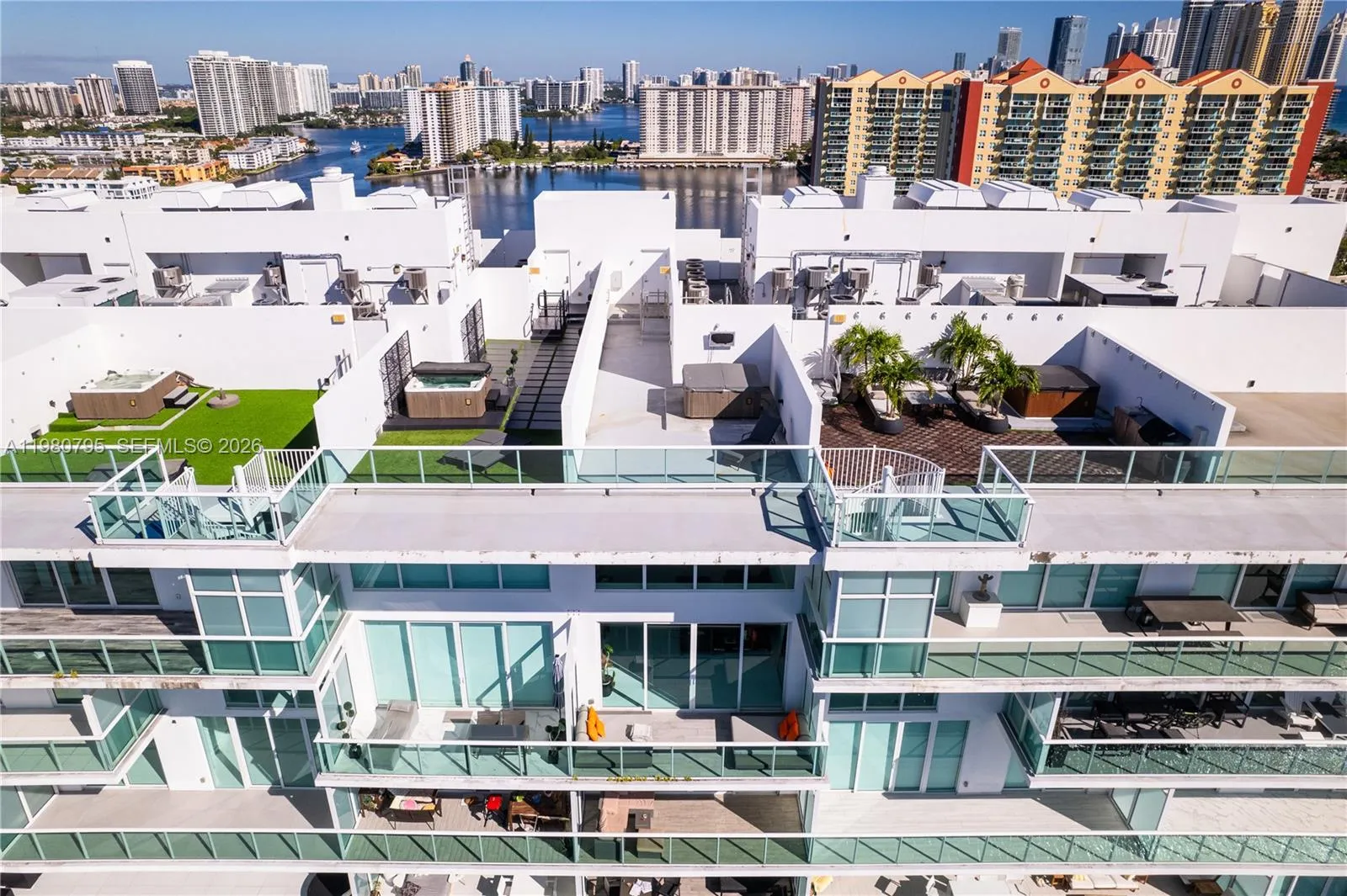 Luxurious 4-bedroom, 4.5-bathroom penthouse with 3,088 SF plus a private rooftop terrace, offering breathtaking ocean and bay views. This bright, open-concept residence features floor-to-ceiling impact windows, a spacious balcony, and a rooftop jacuzzi. Finishes include porcelain floors, electric blackout shades, custom closets, and a designer kitchen and baths with quartz countertops and high-end appliances. The building offers a private marina with dry dock and slips for yachts up to 100’, along with resort-style amenities including 24-hr concierge, valet, spa, pools, cabanas, and tennis courts, all just steps from the beach and minutes from Bal Harbour and Aventura.