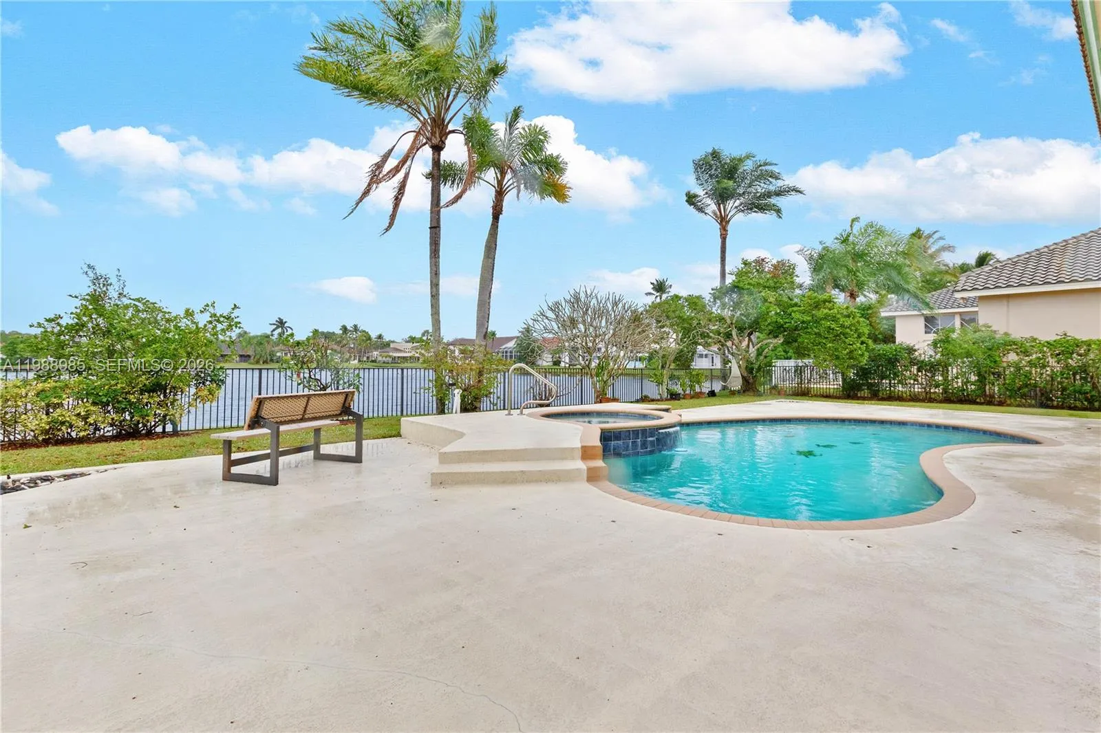 Experience luxury living in this stunning builder’s model home located in the exclusive gated community of Plantation Palms. This per appraiser, 4700+ Sq.Ft. is perfectly positioned on a premium lakefront lot, this upgraded residence offers breathtaking panoramic water views and exceptional indoor-outdoor living. Inside, find elegant porcelain tile flooring on the main level and rich solid wood flooring upstairs(second-floor updated wood flooring complemented by custom interior doors and a striking marble wood-burning fireplace with a stylish bar, ideal for entertaining. The fully remodeled kitchen features custom cabinetry, sleek Silestone countertops, and high-end stainless steel appliances. Designed for comfort, convenience, and peace of mind, the home includes all hurricane impact windows and doors, a full standby generator, and integrated wiring for surround sound and a home theater system. Bright enclosed spaces provide flexible options for a home office, playroom, or den. The luxurious primary suite boasts a private dressing area, custom walk-in closet, and a spa-inspired bathroom retreat. Step outside to your own private oasis with a fenced yard, expansive patio, motorized XL awning, heated saltwater pool, and lush landscaping—all overlooking serene lake views. Additional highlights include a roof just 2 years old and a first-floor A/C replaced 4 years ago. This exceptional home offers the perfect blend of elegance, functionality, and the ultimate Florida lifestyle. A true must-see!