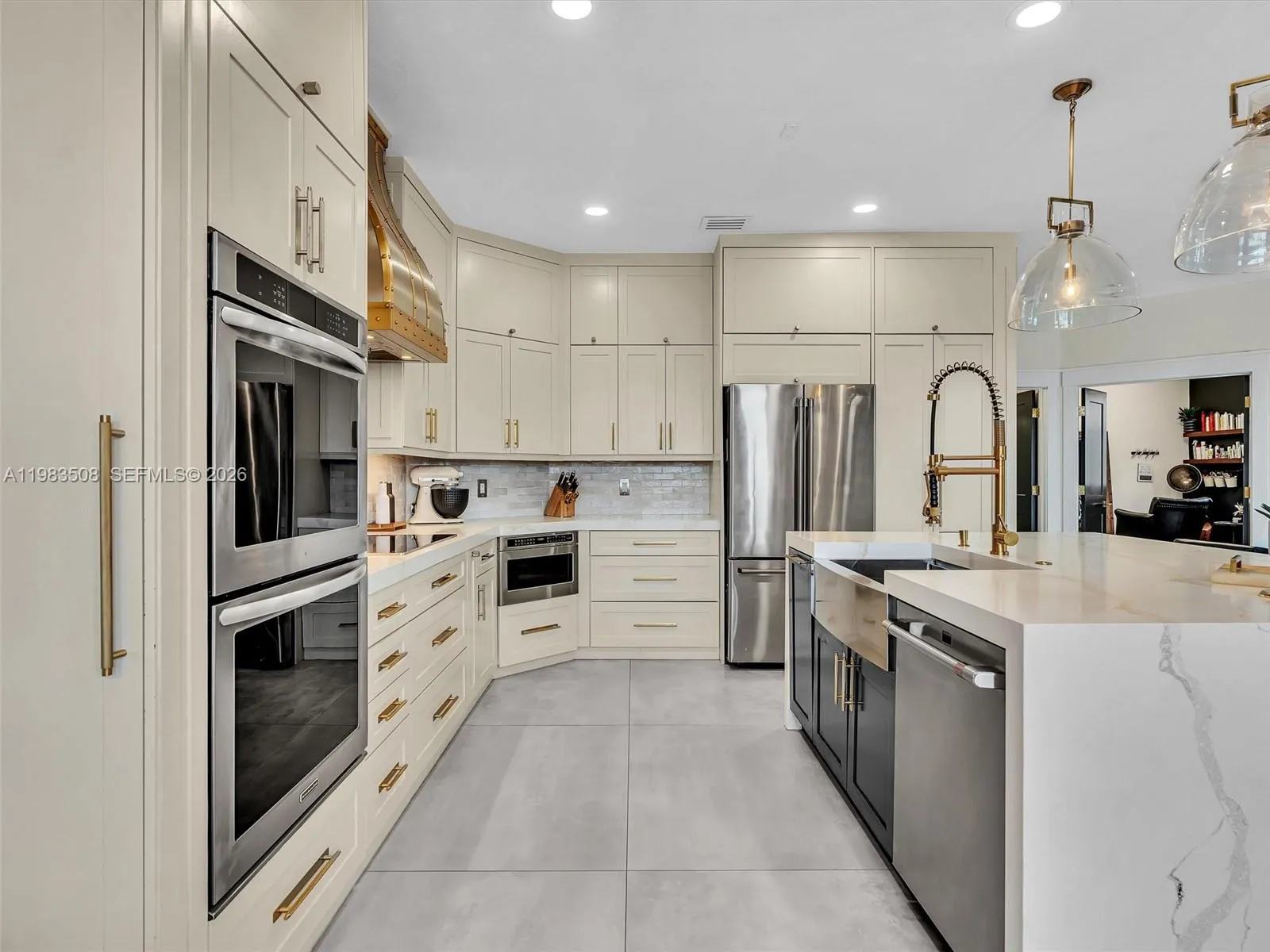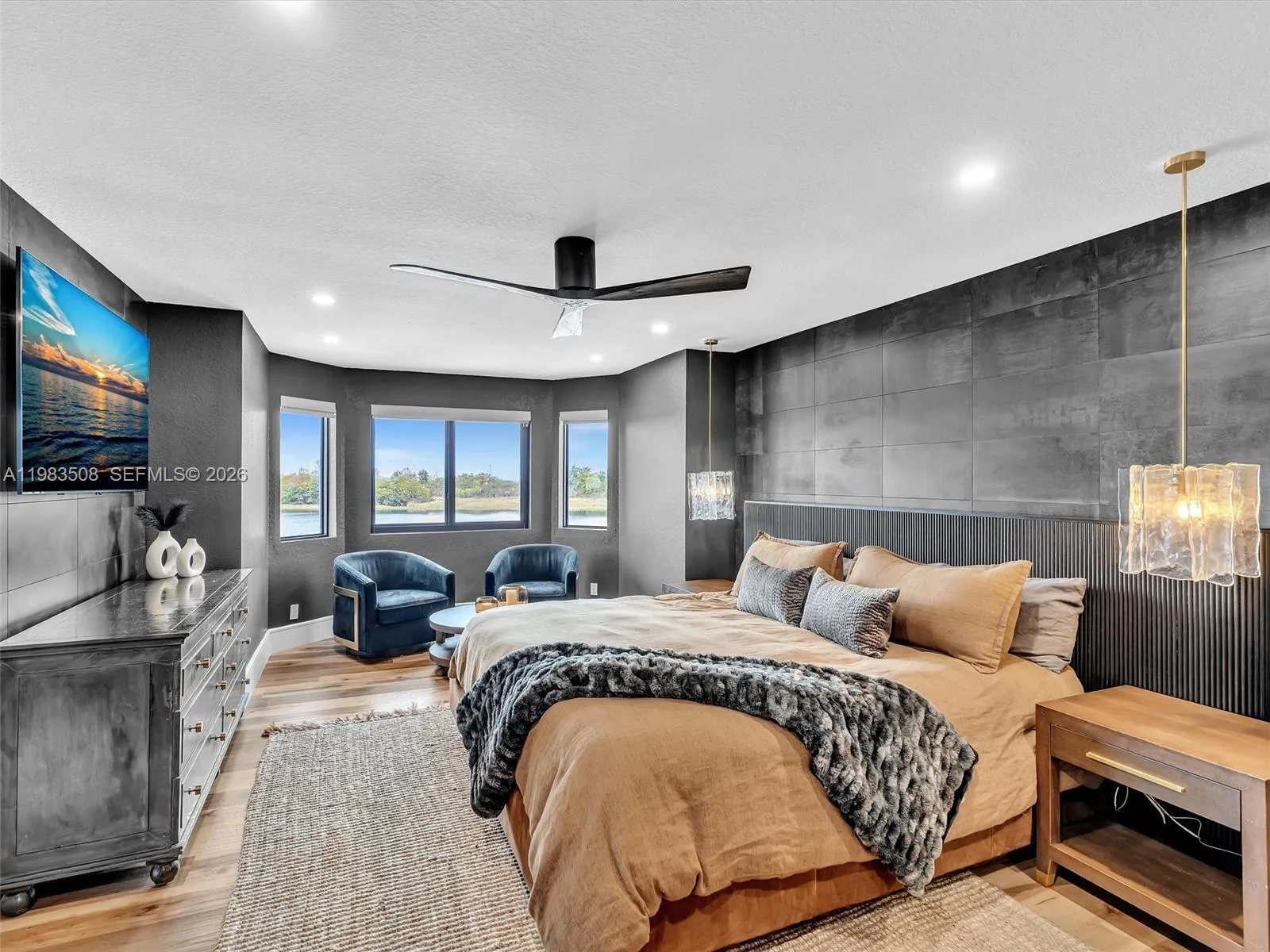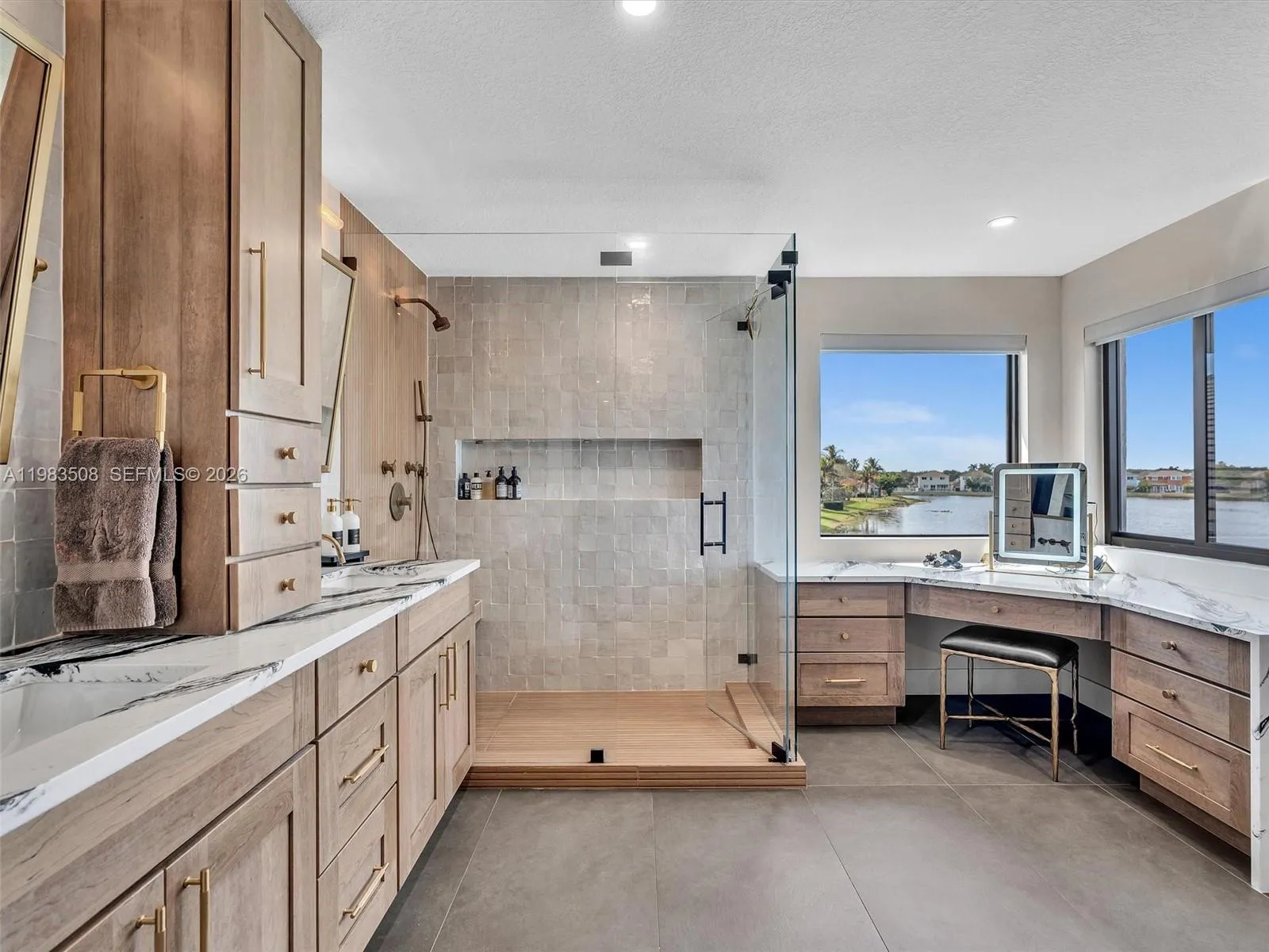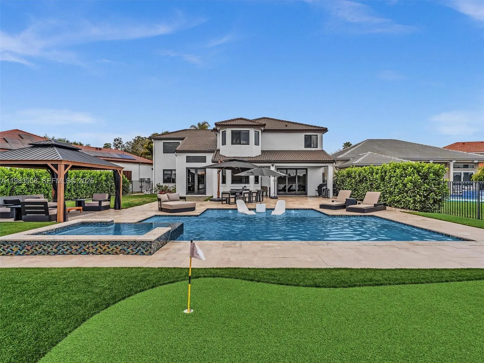Fully renovated waterfront residence nestled on a quiet cul-de-sac in the gated community of North Lakes. Offering 3,031 SF of living space on the largest lot currently available in the neighborhood, a rare 13,000± SF waterfront lot with privacy and unobstructed lake views, ideally positioned for abundant natural light and beautiful sunsets all year long. A dramatic 10FT impact front door opens to stunning sightlines through the home to the pool and lake. The interior showcases Italian porcelain flooring, solid oak stairs and wall panels, designer finishes, and full impact windows & doors throughout. The chef’s kitchen features top-tier appliances, quartzite countertops, a quartz island, solid brass fixtures with pot filler, handmade Zellige tile backsplash, and an LED-lit bar. The primary suite on the 2nd level offers a spacious sitting area with serene lake views. The outdoor living experience is nothing short of extraordinary. Designed as a private waterfront sanctuary, the heated saltwater pool and spa feature a spacious sun shelf with in-water loungers, LED lighting, and elegant water features. The expansive patio provides multiple lounge areas complemented by a gazebo and a private mini golf putting green, offering complete privacy and uninterrupted water views rarely found. A rare opportunity to own the largest waterfront lot available in North Lakes, combining modern design, privacy, and elevated outdoor living.