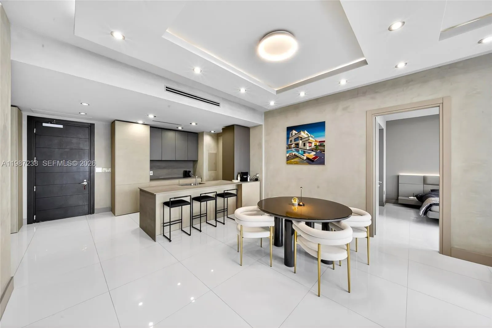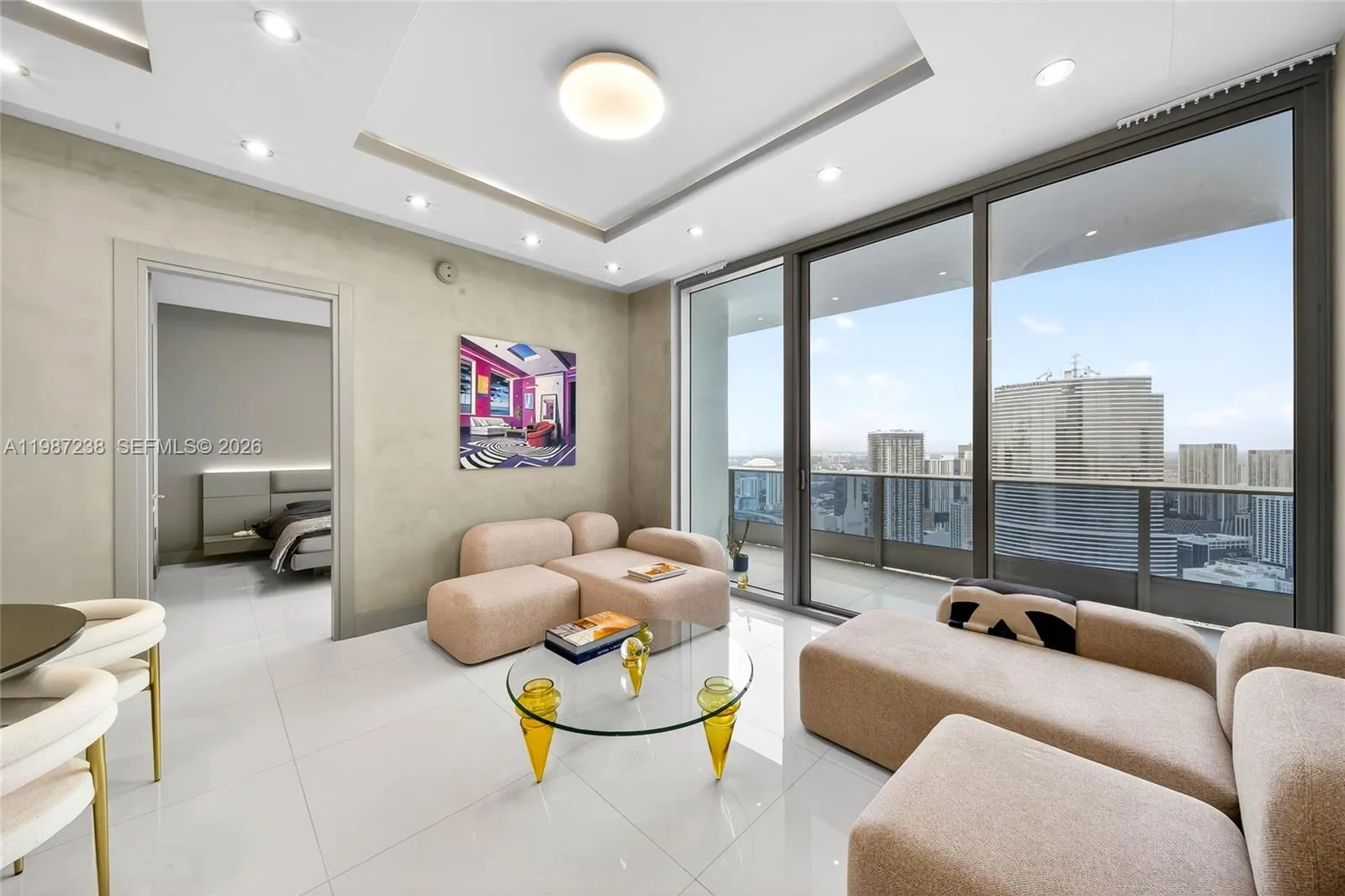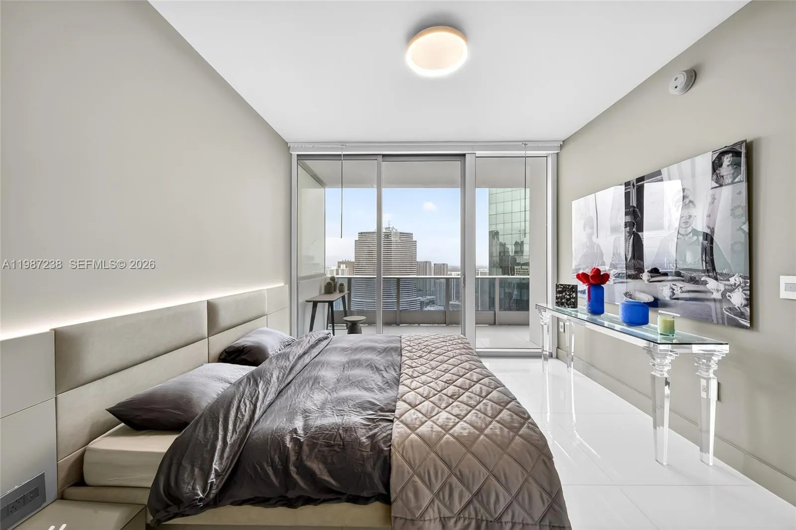 Perched on the 50th floor of a sleek modern tower: EPIC, this newly remodeled European-inspired condo marries cutting-edge design with timeless elegance and premier Italian finishes. Floor-to-ceiling windows frame sweeping water and city panoramas, flooding the open-plan living spaces with light. The chef’s kitchen, by MODULNOVA, features New integrated handle-less cabinetry, NEW high-end Miele appliances, and new stone countertops with a dramatic island. New Spa-caliber bathrooms boast designer fixtures, an oversized Jacuzzi, a new walk-in shower, new radiant surfaces and microcement walls. Oversized white porcelain tile flows throughout the residence, complemented by new custom closets, a new built-in glass wardrobe, recessed lighting, Italian plaster in the living room, and a second bedroom outfitted with new bespoke DIOTTI cabinetry. Thoughtful finishes and a seamless flow from entertaining areas to private quarters create a turnkey luxury residence. Residents enjoy concierge-level service, premier building amenities, and immediate access to the city’s finest dining and shopping.