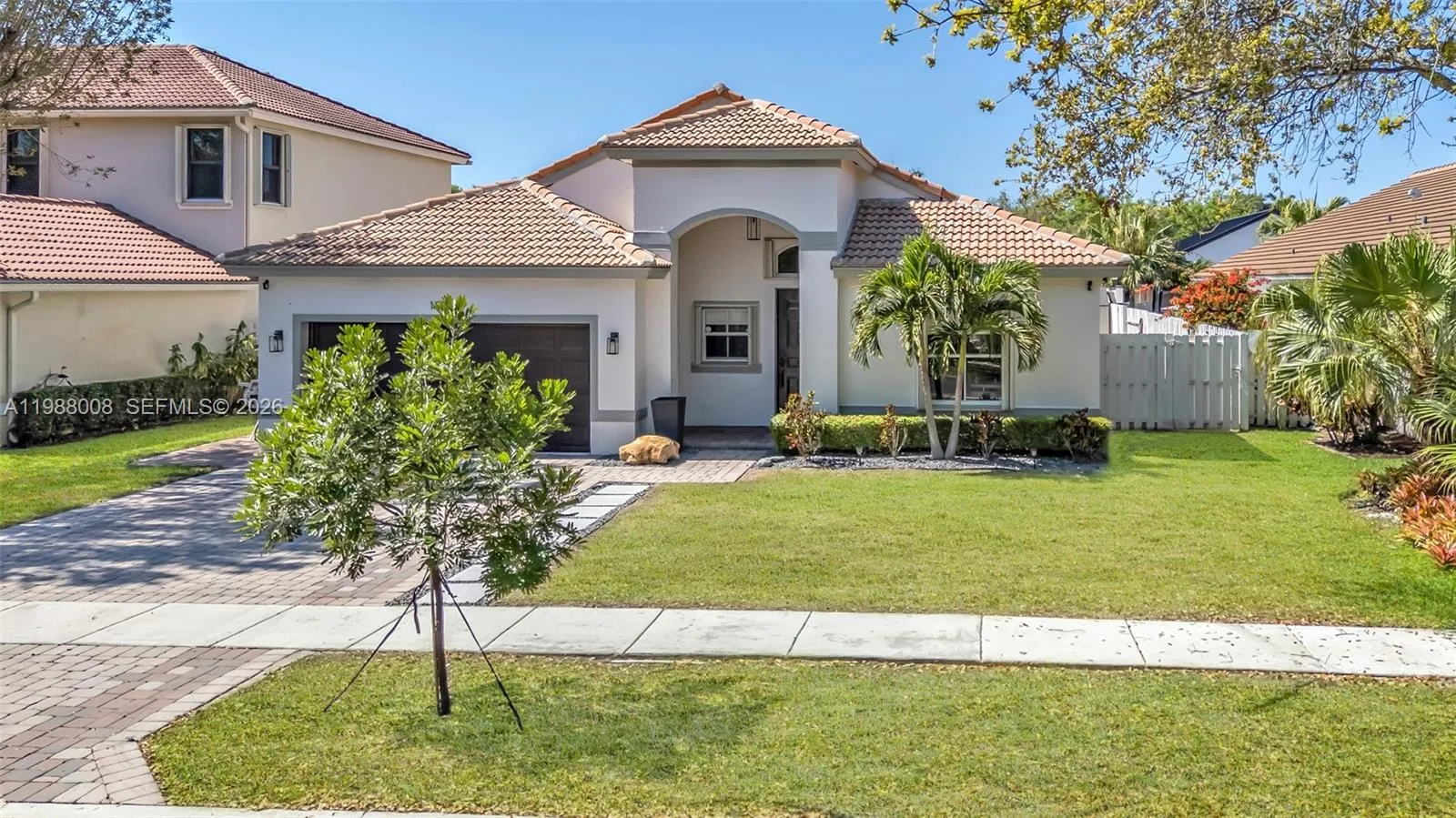 Bright and modern one-story residence located in the gated community of Monaco at Sunset Lakes, offering resort-style amenities.This beautifully maintained home features a designer walk-in closet in the primary suite and fully renovated bathrooms throughout. The spacious kitchen showcases a large island, perfect for entertaining and family gatherings, along with premium LG appliances.rnStep outside to your own private oasis with a large pool, dedicated playground area, and a shaded cabana ideal for outdoor living and entertaining.Turnkey and ready for its new owner. HOA covers Alarm, Wifi with Xfinity, ADT Alarm, Comcast Basic Tv Cable, Gate, and all Sunset Lakes Amenities