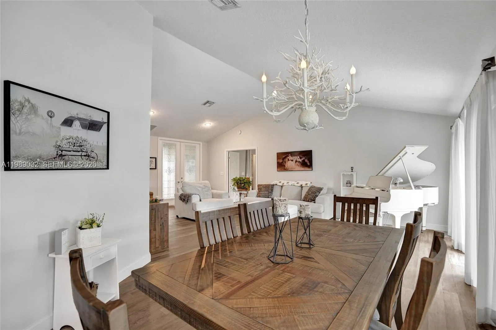 • Interior Features: Bedroom on Main Level, Breakfast Area, Dual Sinks, First Floor Entry, Living/Dining Room, Kitchen Island, Built-in Features, Split Bedrooms, Separate Shower, Main Level Primary, Vaulted Ceiling(s)