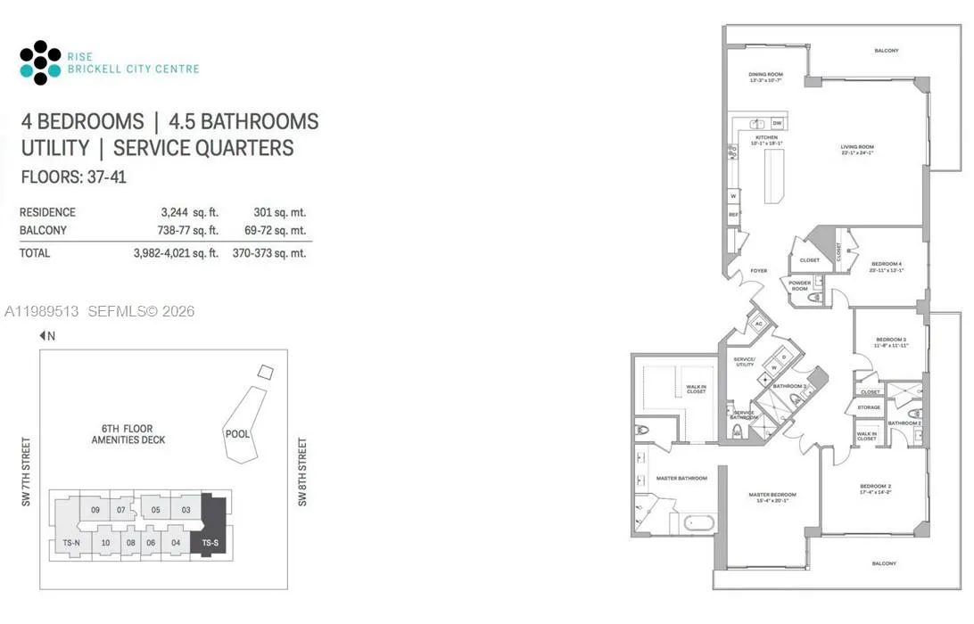 Stunning 4BR/4.5BA lower penthouse at Rise, Brickell City Centre. Featuring 12 ft ceilings, 48″x48″ Italian porcelain floors, custom Italian cabinetry, quartz waterfall island, floating vanities, and electric shades. Spacious walk-in closets in all bedrooms, large laundry room, and maid’s room with bath. Enjoy panoramic sunrise-to-sunset water and skyline views from 9-ft deep wraparound balconies. Includes 2 parking spaces and complimentary valet for guests.