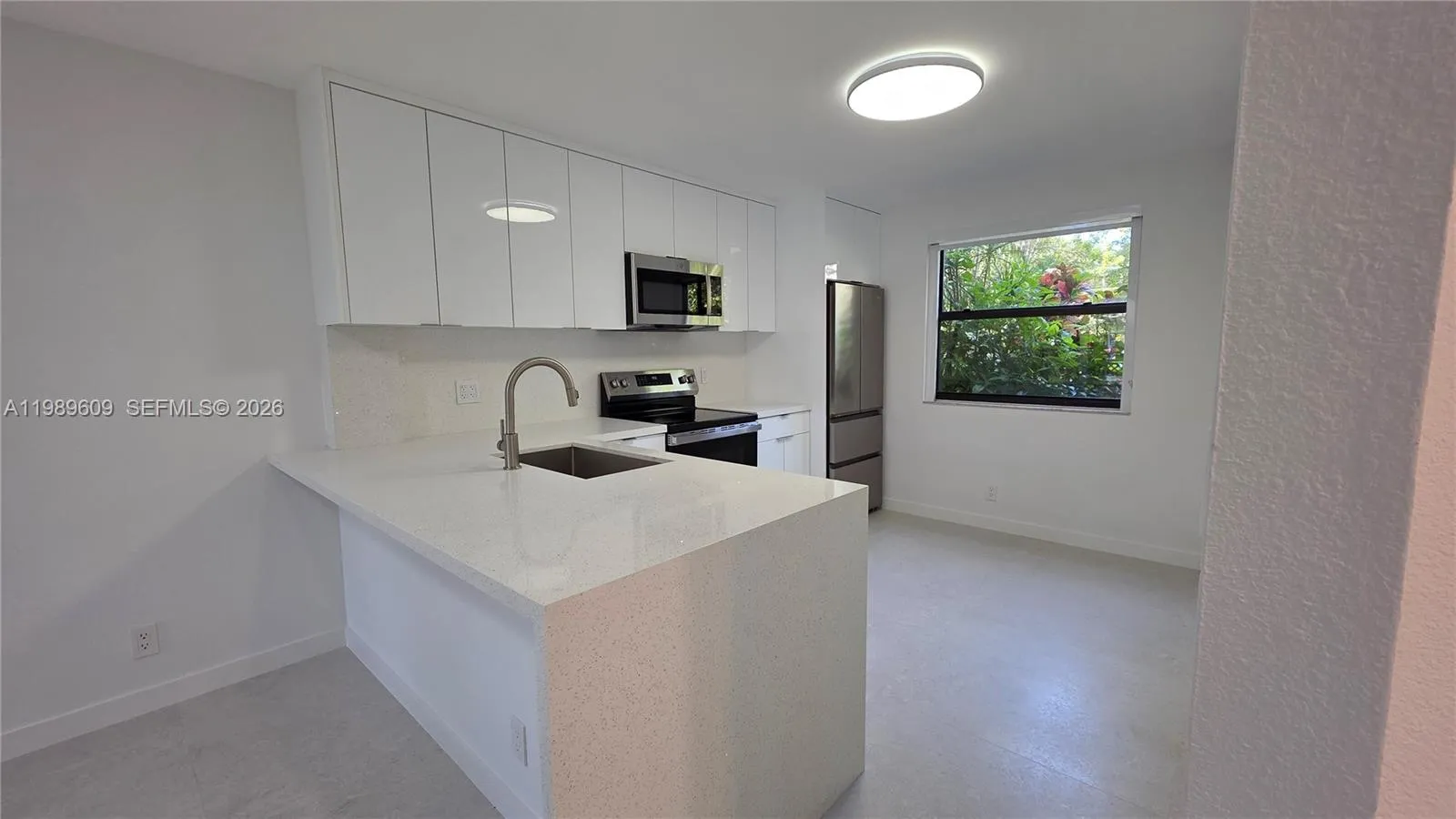 Completely renovated 2BD/2BA first-floor condo at Grand Marquis Condominium in Plantation — brand new for a qualified tenant. Every finish, fixture, and appliance is new; you’ll be the first to enjoy it all. Open living and dining area with sliding glass doors to a private patio overlooking a serene lake. Stunning kitchen with floor-to-ceiling high-gloss white cabinetry, quartz countertops, and all-new stainless steel appliances including French door refrigerator, glass-top range, built-in microwave, and dishwasher. Both bathrooms fully redesigned featuring frame-less glass showers, large-format porcelain tile, pebble mosaic floor, rain shower-heads, floating vanity, and backlit LED mirror. All closets are custom built-in with dedicated hanging space, shelving, and drawers — no extra furniture needed. In-unit stacked washer/dryer, smart thermostat, updated LED lighting, and polished tile floors throughout. Hurricane impact doors and windows throughout. 963 sq ft. Unit comes with 2 assigned parking spaces. Enjoy top-tier amenities: pool, tennis court, BBQ area, gym, party room, and lush green spaces—all in a gated community. Prime location near Sawgrass Mall, dining, and shops. Pet-friendly (under 30 lbs). Move-in ready. Won’t last — schedule your showing today.