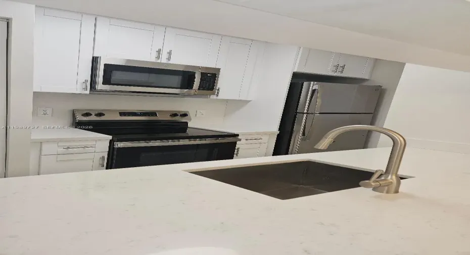 Totally remodeled 3-bedroom 2-bathroom 2nd story condo in the Hammocks. Huge Bedrooms. Large Living Room/Dining Room. Gorgeous kitchen, quartz countertop, stainless steel appliances, beautiful bathrooms, Tile floor throughout the entire unit, a full-size washer and dryer, and a balcony. Building is recently painted, community has a pool, and there’s a reserved parking space. Lots of visitor parking, close to Publix, CVS, small restaurants, and schools. Easy to show.