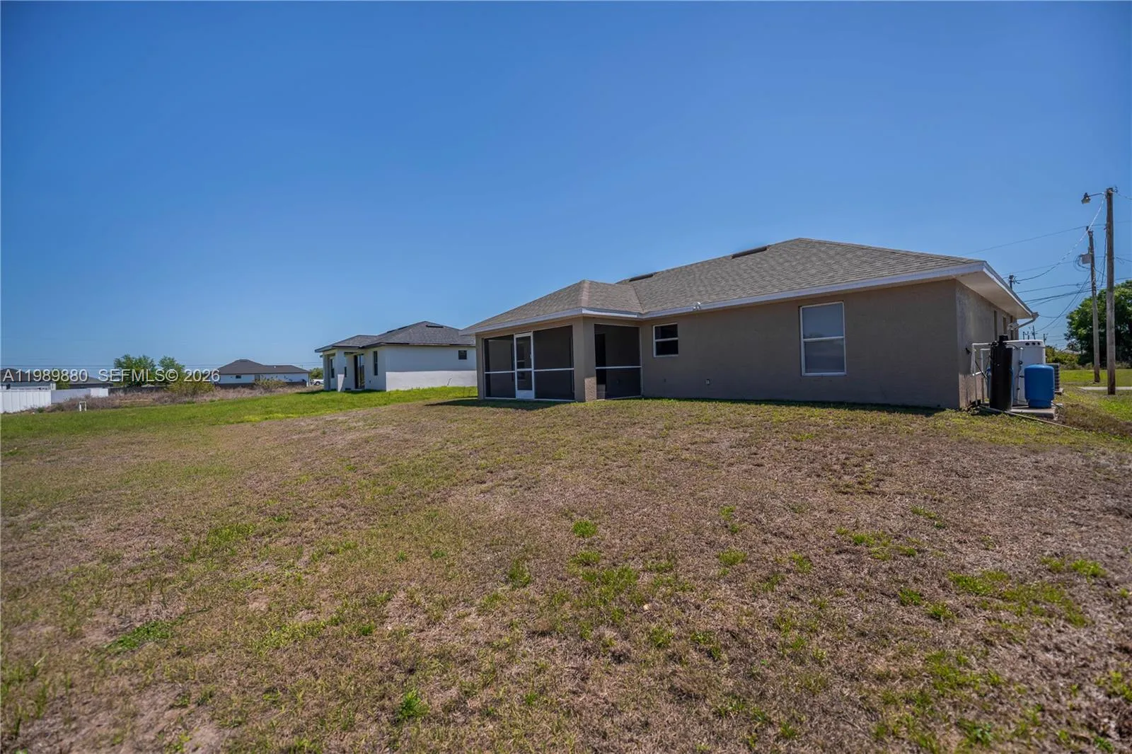 PICTURE PERFECT! Conveniently located in the heart of Lehigh Acres with quick access to shopping, dining, and daily essentials. This home offers fantastic value for the savvy buyer seeking a well-cared-for home in a rapidly growing and stable area. “This beautifully maintained 3-bedroom, 2-bath home sits on a spacious 0.25-acre lot, showcasing a split-bedroom floor plan for privacy and functionality. The master suite features a walk-in closet and private bath. You’ll appreciate the open-concept layout and ample feel of its vaulted ceilings. This well-designed home offers a centrally located kitchen that includes a large island with direct sightlines to the Great- room. Sliding glass doors in the dining area lead you out to the screened-in, covered lanai perfect for enjoying a relaxing evening breeze. The spacious backyard is sure to entertain, with plenty room for pets, playground and a pool! This home has been freshly painted inside and out and cleverly color coordinated, including a fully painted garage with a coated epoxy floor. Major newer updates include roof, HVAC system, water heater, and water softener for improved water quality. Hurry don’t let this opportunity pass you by it’s sure to sell fast!