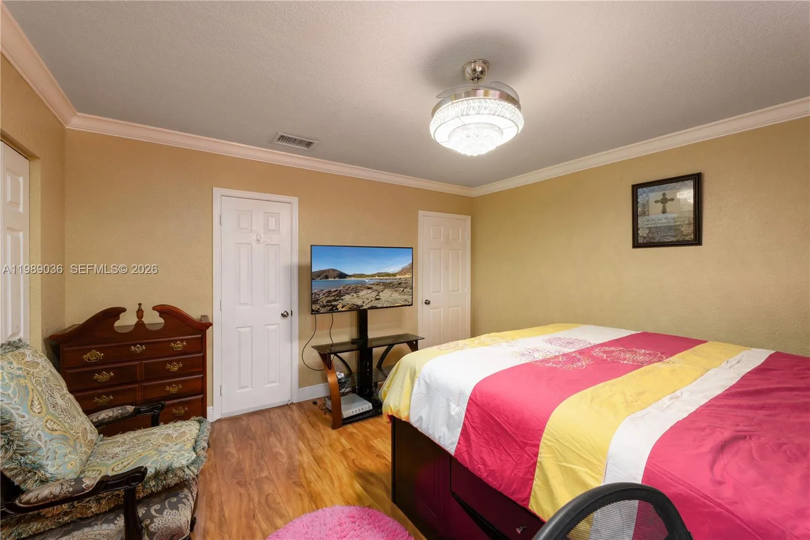 You can make this elegant and spectacular 5 bdr / 3.5 bth , 3 car garage (1 garage converted to in-laws qtr) , many upgrades , many fruit trees and a relaxing view of the lake in your own backyard . Also has an outdoor kitchen area. All windows and doors are impact resistant . Beautiful chandeliers. Plenty of storage space throughout the house. Roof was replaced 2019 , and A/C , brand new water heater .rnHome resides in a tranquil , secure ,and lush neighborhood. Don’t wait, and come see this home today !