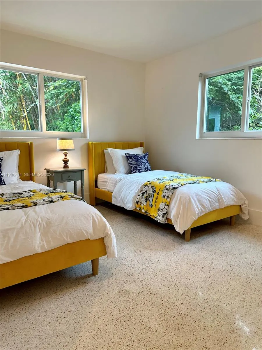 Modern and bright 3BD/2BA home featuring beautiful terrazzo floors, central A/C, and a brand-new kitchen and bathrooms. The open-concept layout offers two spacious living areas, a split bedroom plan, and a master suite with en-suite bath and closet. Two generous guest bedrooms share an oversized bathroom. Washer/dryer included.rnOutside, a new modern concrete entry, a 750 SF backyard patio, and a huge yard filled with mature tropical fruit trees.