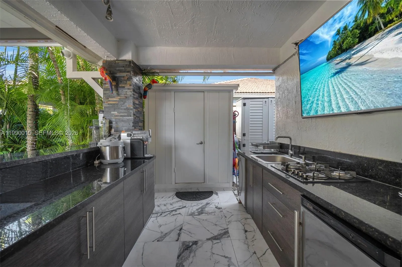 • Exterior Features: Barbecue, Awning(s), Security/High Impact Doors, Fence, Outdoor Grill, Shutters Electric