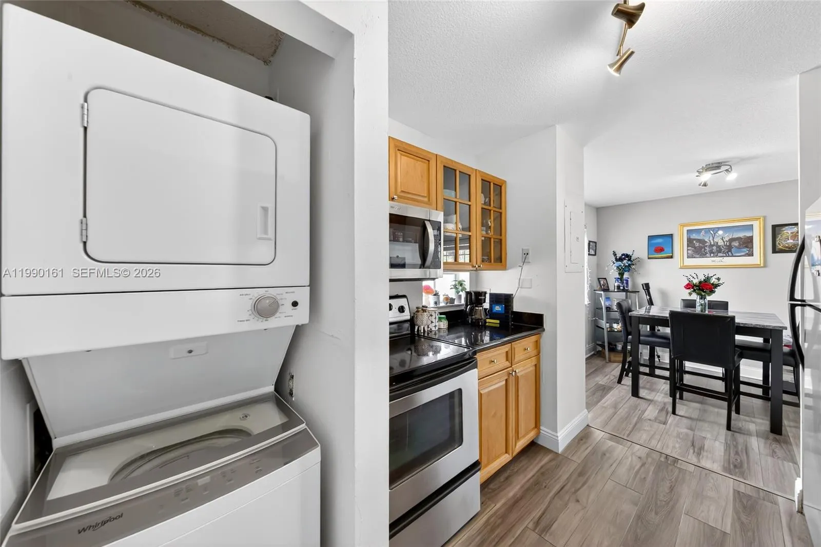Welcome to this bright, spacious & well-maintained 1 bedroom condo with 2 full baths located in the heart of Pembroke Pines! Notable improvements done in 2022: New AC, LVP flooring throughout, baseboards, popcorn ceiling professionally removed, new tankless water heater, interior paint, blinds & accordion shutters. Kitchen has granite counters & SS appliances. Convenient in-unit laundry. Both bathrooms have been updated as well. The building’s roof was also replaced in 2022. One assigned parking space in front of building plus an option for a 2nd resident vehicle. Complex has a brand new virtual security guard gate system & more future community improvements are being planned.