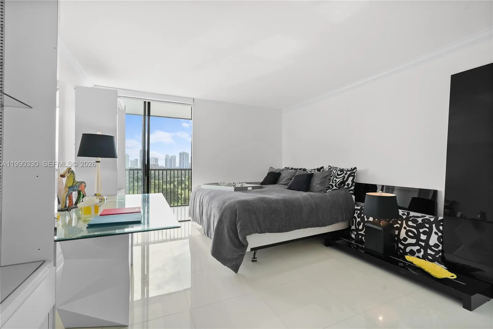 The most desirable and largest 2 bed 2 bath in the building, beautiful views from the balcony and all bedrooms and the living room. Recently renovated bathroom with a modern glass-enclosed shower, tile floors and a split-style floor plan allow natural light throughout the unit, Walk In Closet. Spacious balcony with amazing golf course views and city skyline views. Includes 1 assigned parking space in a covered garage and 1 storage unit. Just minutes to the beach, Aventura Shopping Mall, Turnberry Golf Course, Sunny Isles, US1, supermarkets, cafes and restaurants. Secured gated community with plenty of guest parking spaces. The building passed 40-year certification and features renovated halls, lobby and elevators. Amenities include fitness center, pool, sauna, jacuzzi, and 24-hour security