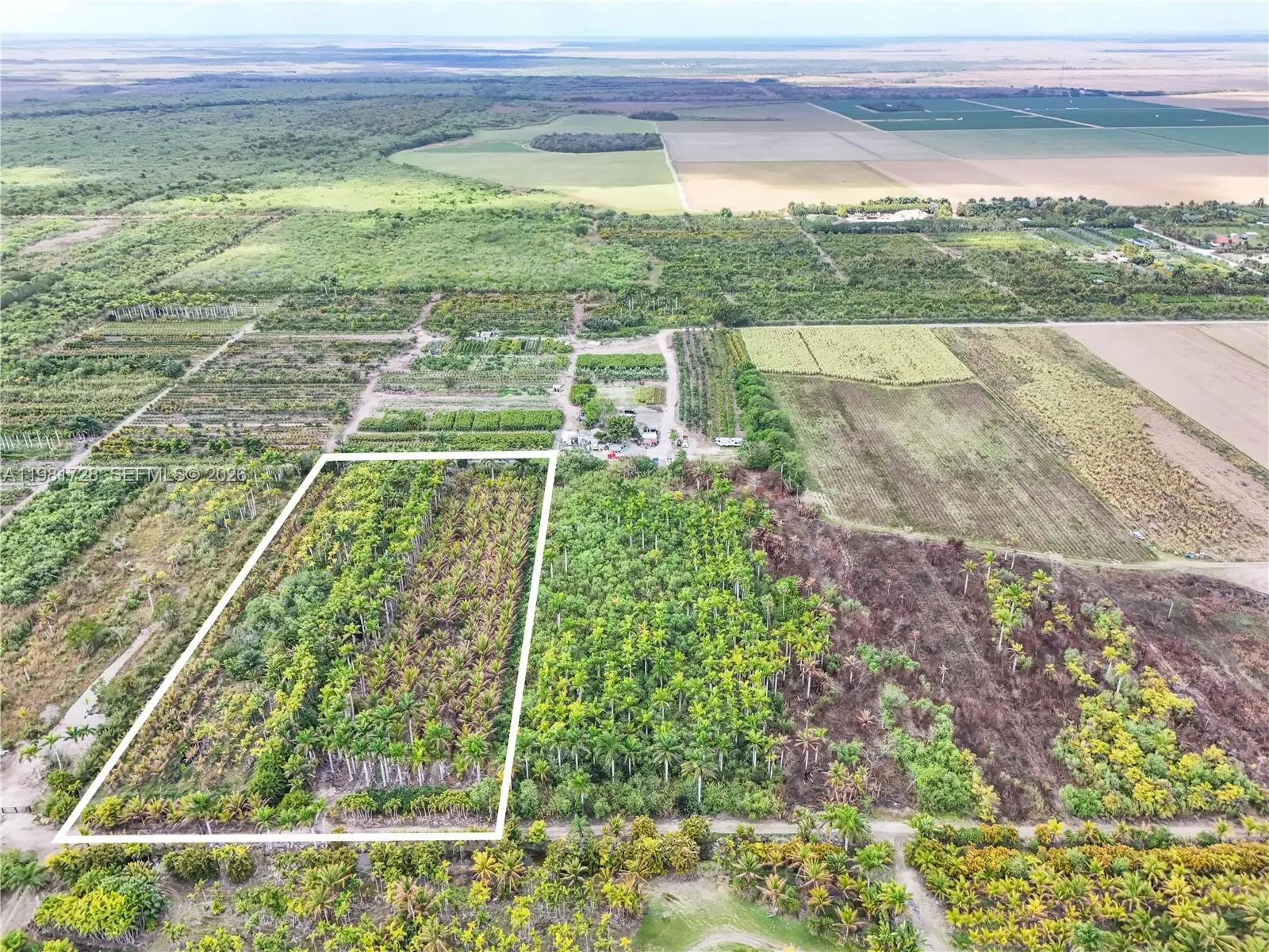 Rare opportunity to acquire 39.47 acres of prime land in Homestead, Florida, offered across four combined folios: (1) 207,999 SF, 4.77AC, (2) 1,071,576 SF, 24.6AC, (3) 221,720SF. 5.09AC (4) 218,235SF, 5.01AC. The property is part of an inheritance and was used for field growing palm trees. Property is zoned GU (Interim Use) and is currently operating as agricultural land, making it ideal for continued farming operations, nursery expansion, or long-term land banking. Located along SW 400 Street in Homestead, this expansive tract offers tremendous flexibility and long-term potential. The property features an extensive tree inventory and is well-suited for agricultural cultivation, nursery operations, or strategic investment while holding for potential future development. Expand an existing agricultural business, invest in productive farmland, or secure a large landholding in a rapidly growing area.
