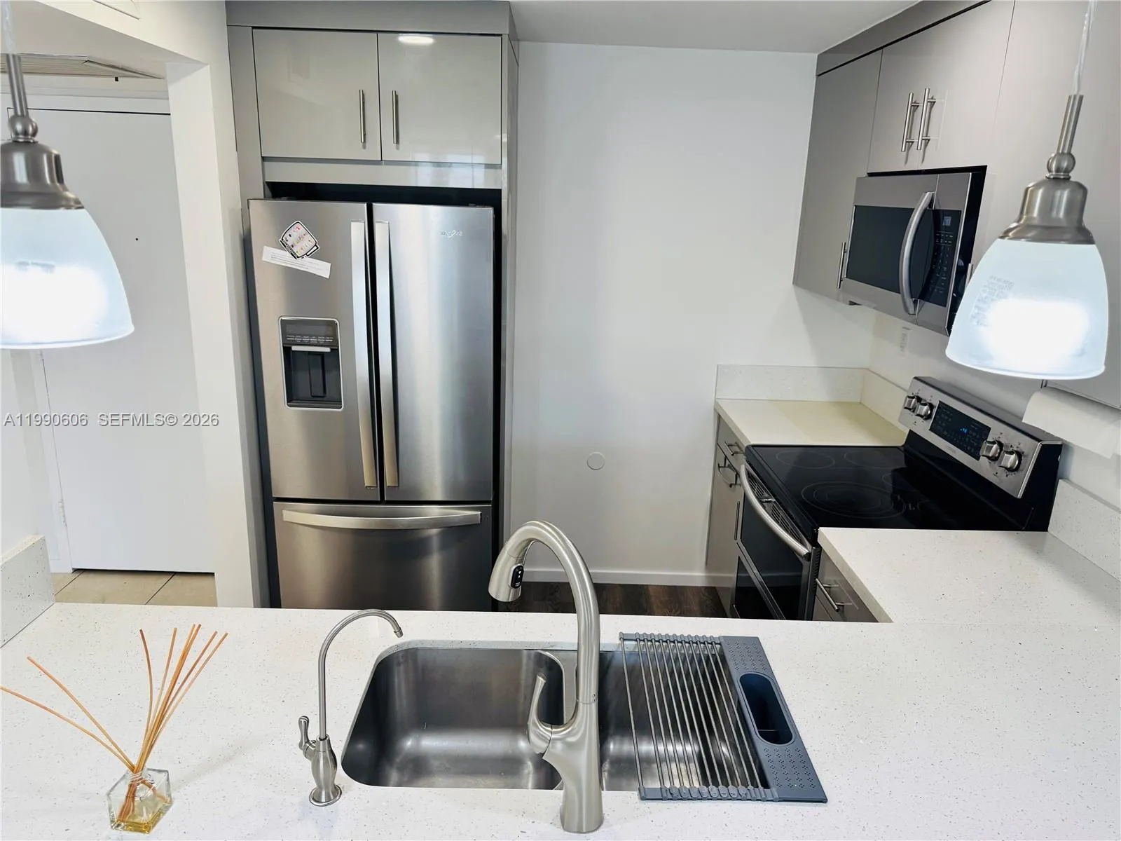 Beautiful and brilliantly renovated, spacious unit: 1 bed, 1 bath, plus den. new modern kitchen, granite countertop, backsplash. New bathroom has new tub and toilet, and new porcelain tile, walk-in closet, large dining/living combo. 1 parking space assigned, plus a lot of guest parking spots; laundry on the same floor; the community has a tennis court and a great pool area overlooking the canal, perfect for relaxation. Walk to the park, 2 minutes from retail, restaurants, coffee shops, and the beach, also close to Aventura Mall. Very important: you will have a great landlord. 20 minutes to airport. Don’t be the last.