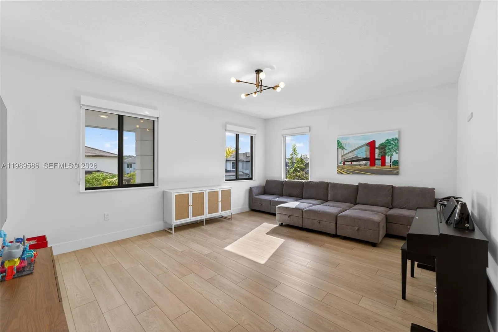 A striking contemporary residence in the gated community of Centris, built in 2023 and designed for elevated everyday living with privacy and security. This expansive home offers a bright, open layout enhanced by impact windows and doors, refined finishes, and seamless flow throughout. The sleek kitchen is appointed with Wolf and SubZero appliances, quartz countertops, and generous space for both casual dining and entertaining. A desirable first-floor bedroom provides flexibility for guests or multigenerational living, while upstairs, an additional family room serves as a versatile den, media lounge, or play area. Residents enjoy access to a thoughtfully designed community with a resort-style pool, barbecue gazebo, children’s playground, and landscaped walking paths ideal for daily strolls. Ideally positioned near Pinecrest, top-rated schools, and just minutes from The Falls, Dadeland Mall, local boutiques, dining, and scenic parks including Matheson Hammock and Chapman Field, this home offers a refined balance of comfort, convenience, and modern design.