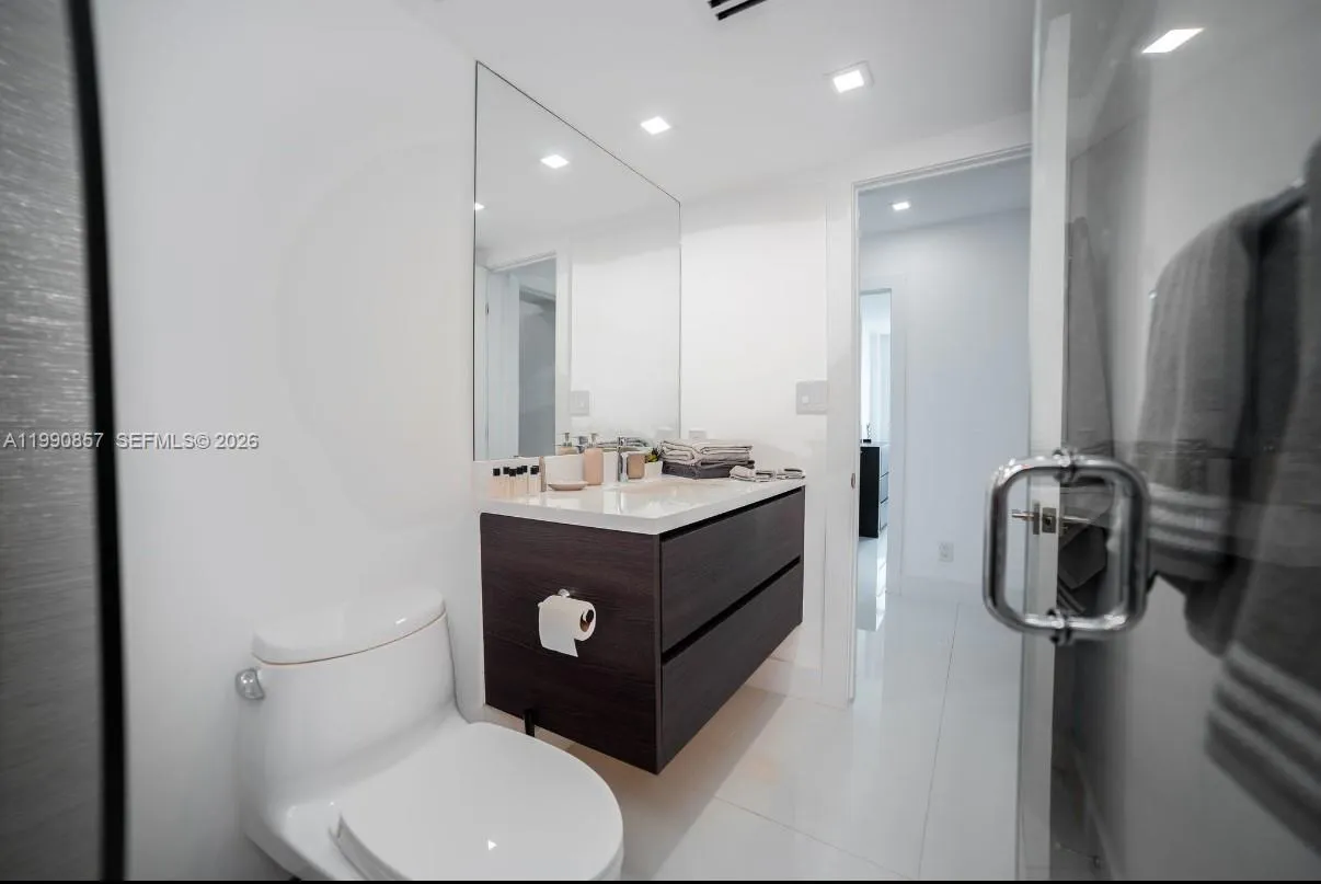 One-of-a-kind luxury residence offering breathtaking Intracoastal, bay, and Miami skyline views. Fall in love with this expansive 2,120 SF corner unit featuring 3 spacious bedrooms and 3.5 bathrooms, designed for both comfort and sophistication.rnThis exceptional property includes two assigned parking spaces, one valet space, and two private storage units—an extremely rare find in Miami.rnCompletely upgraded with approximately $400,000 in high-end renovations, the residence showcases elegant 48” x 48” porcelain flooring throughout, a fully redesigned modern kitchen with top-of-the-line custom cabinetry, and premium appliances including Sub-Zero refrigerator and freezer, Wolf induction cooktop, convection oven, microwave, and wine cooler.rnrnAll bathrooms have been beautifully updated with designer finishes and high-quality fixtures, creating a spa-like experience.rnrnNo special assessments pending.rnrnIdeally located with easy access to beaches, dining, and shopping. Easy to show.