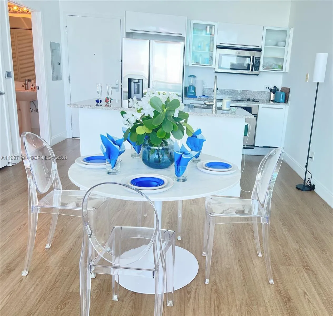 Stunning furnished residence with 1 bedroom 1 full bath, 1 half bath, situated in Downtown most prestigious skyline. This modern sanctuary floor to ceiling windows, offer panoramic water views. Enjoy an open concept layout, modern design, washer & dryer, located steps from Bayside and the Performing Arts Center, minutes from South Beach and Miami International Airport. World Class Amenities, prime urban location. This unit is fully furnished.