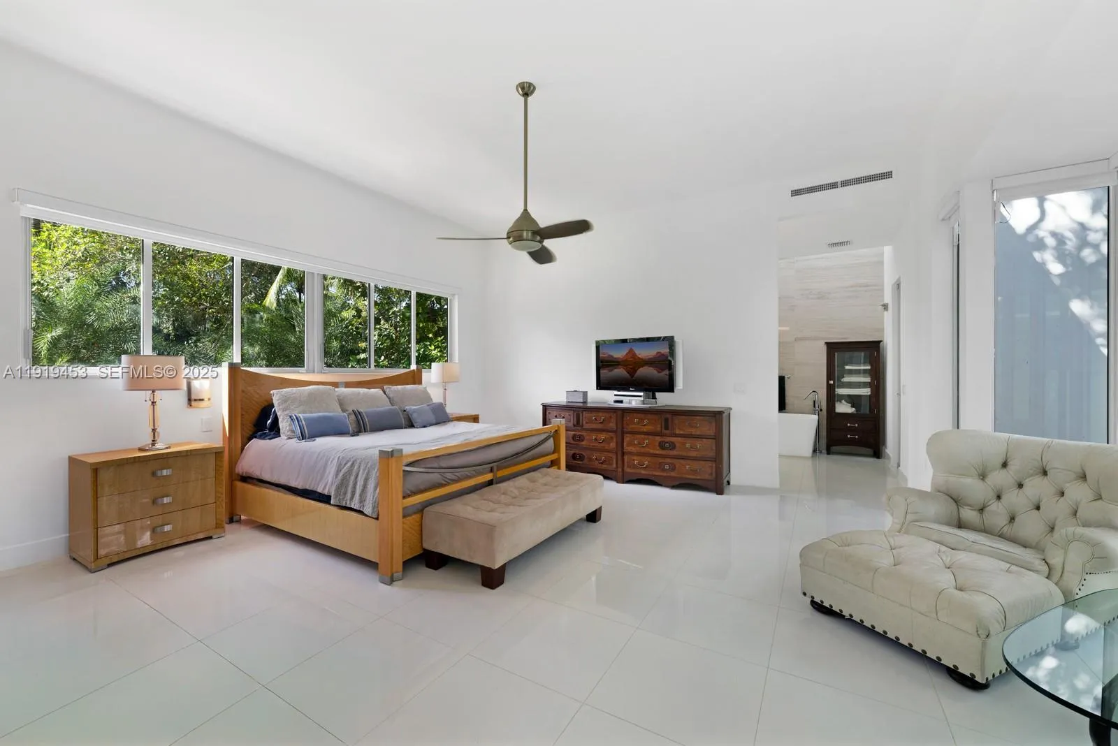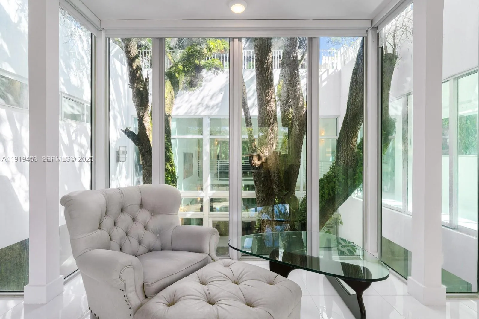 Designed by architect D.B. Lewis, this gated 2017 contemporary home in Coconut Grove offers a spacious layout ideal for entertaining. A dramatic three-story atrium greets you on entry, anchored by two mature oak trees. The lower level features a seamless indoor-outdoor flow and a chef’s kitchen with a gas Gaggenau cooktop and Miele and Viking appliances. Five en-suite bedrooms include a private primary wing with lounge, spa-style bath, and windowed walk-in closet. A 1-car air-conditioned garage and driveway space for three more vehicles add convenience. The rooftop retreat boasts a pool, gazebo, and cabana bath.