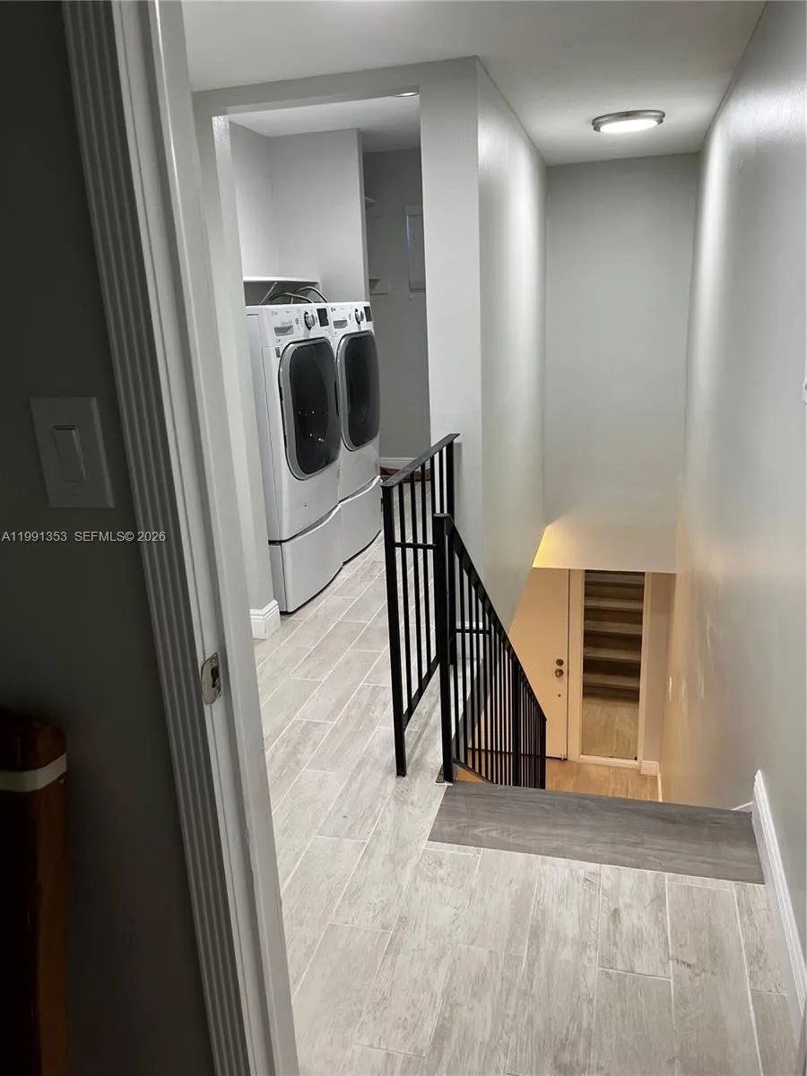 Fully remodeled two-story unit in the Heart of Fontainebleau. Beautiful open kitchen with stainless steel appliances and window over sink so natural light comes in from both sides of the unit. Ample dining/living room with alcove and large balcony. Half bath on first floor. Large bedroom on the second floor with rolling barn doors to the walk-in closet and bathroom. Laundry room with top-of-the-line side by side washer and dryer, water heater, A/C and plenty of storage area also on the second floor. WILL NOT LAST!