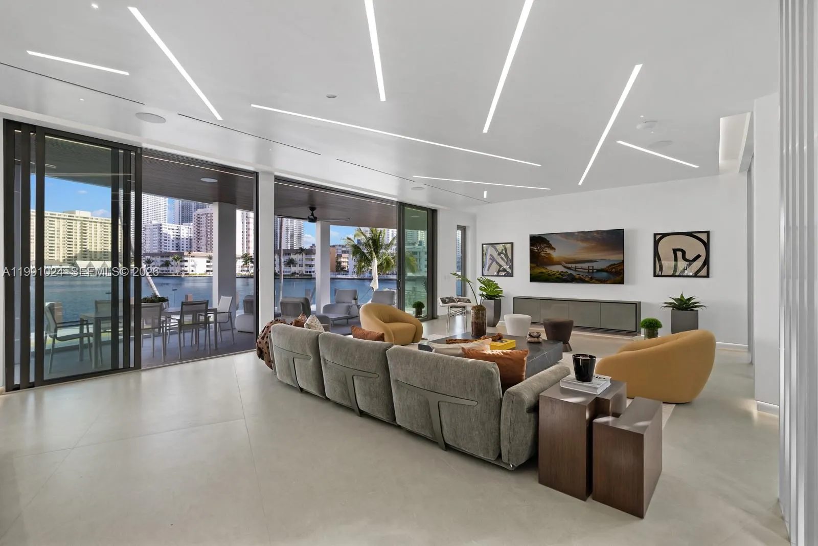 Nestled within the exclusive guard-gated waterfront enclave of Golden Isles in Hallandale Beach, this residence is a true statement of architectural excellence. Positioned on a 16,000 SF point lot along the Intracoastal Waterway, this exceptional estate offers the ability to accommodate a 200 FT mega yacht. Spanning 8,000 SF of meticulously designed interiors, the home features seven bedrooms—five upstairs and two on the main level—plus a private office and fully equipped gym, all crafted with premium materials and custom millwork throughout.The expansive 1,400 SF primary suite offers ultimate privacy with separate his-and-hers bathrooms and custom closets. Additional highlights include a designer European kitchen, wet bar, wine cellar, elevator, and media room. Outdoors, enjoy 315 feet of water frontage, a brand new concrete dock, no fixed bridges, and a resort-style pool with summer kitchen—perfect for true waterfront living and entertaining. Golden Isles is perfectly positioned between Fort Lauderdale and Miami Beach, offering the best of both worlds with unmatched value. Close to A+ schools, Aventura Mall, Bal Harbour shoppes and just 15 minutes to the open ocean.
