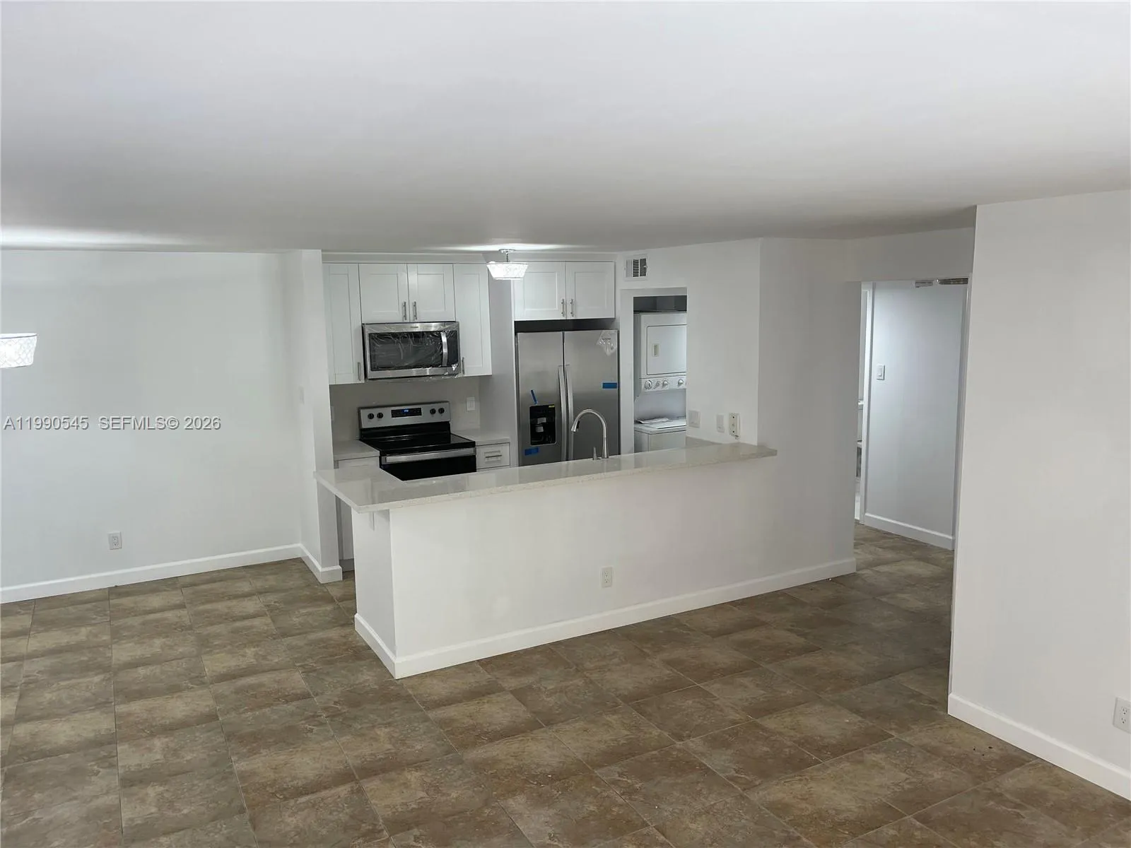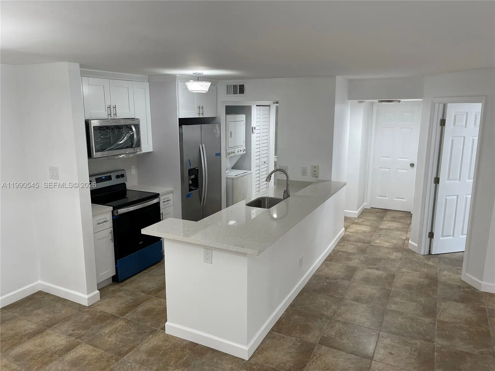 Beautiful Remodeled corner unit on the 2ND floor. 2 bedroom 1 bath all tiled. COMPLETELY REMODELED , NEW KITCHEN , FRESHLY PAINTED WITH NEW LIGH FIXTURES . NEW S.S. APPLIANCES. formal dining, split plan, kitchen w SS appliances, washer and dryer. Balcony with a storage closet. The complex is fenced with guard on site, pool, clubhouse, gym and much more. Quiet community, lots of amenities. Close to schools + shops.