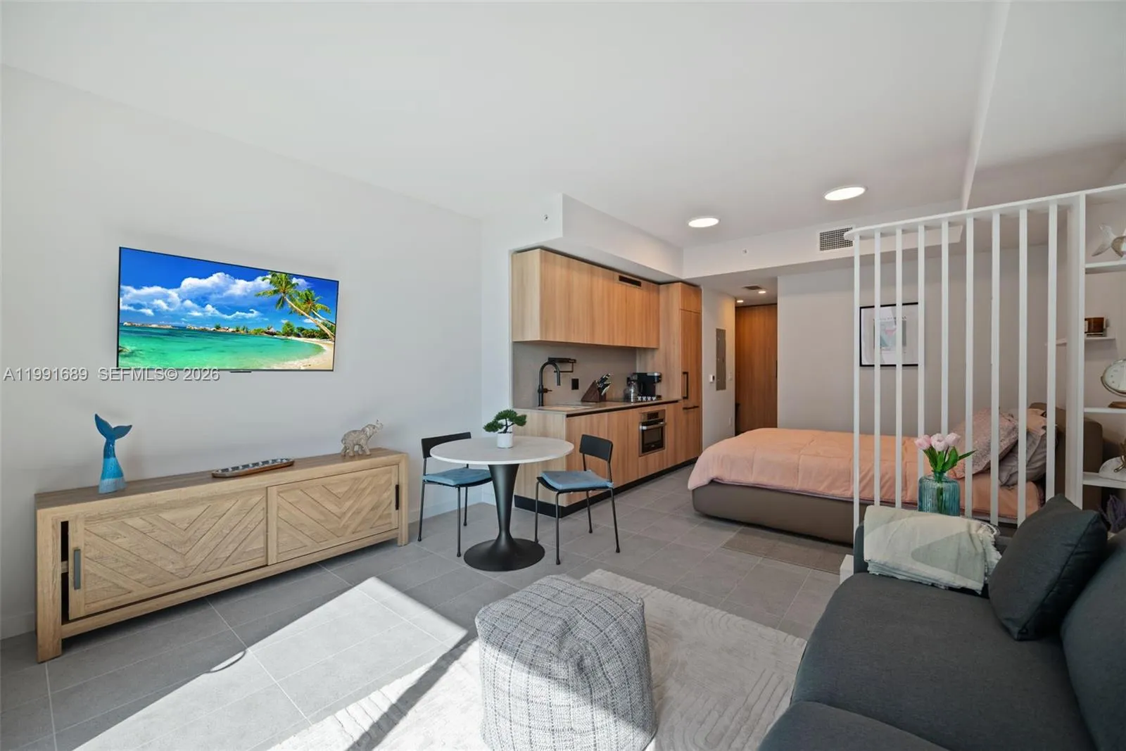Live in the heart of vibrant Downtown Miami in this brand-new, fully furnished studio at 501 First Residences. This modern retreat features floor-to-ceiling glass walls, a private balcony with stunning city views, sleek Italian cabinetry, premium Smeg appliances, and high-end finishes by Shim Projects. Every detail is designed for effortless urban living. Enjoy an unmatched resort-style lifestyle with over 20,000 sq ft of premium amenities, including a breathtaking rooftop pool with a 75-foot resort-style lap pool and hot hydrotherapy bath, dedicated sunrise and sunset decks perfect for relaxing with panoramic views, a state-of-the-art fitness center designed by HOMAGE Fitness (with yoga/meditation area and private training rooms), and a sophisticated lounge room featuring a private club suite, chef’s kitchen, media room, and lush greenhouse oasis. This 40-story tower offers smart community features and a prime walkable location just steps from Bayside Marketplace, Bayfront Park, Kaseya Center, and minutes from Brickell, the Design District, and South Beach. Move-in ready and move-in fabulous — experience Downtown Miami living at its finest. Don’t miss your chance to call 501 First home!