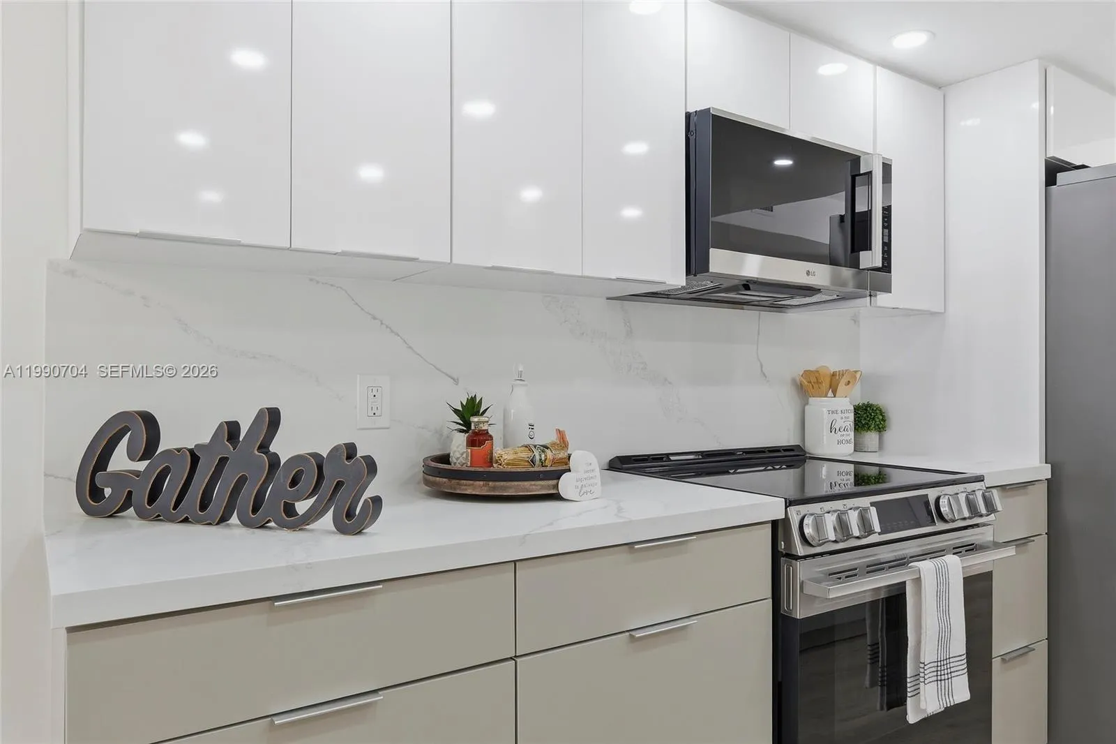 Experience the perfect blend of comfort and modern design in this beautifully updated 2BD/2BA corner unit with serene golf and garden views. The open-concept layout enhances space and natural light, creating a bright and airy feel throughout. NEW!! NEW!! AC, WATER HEATER, WASHER/DRYER. The new kitchen features ceiling-height custom cabinetry, quartz countertops, a breakfast nook, stainless steel appliances, and LED lighting. Elegant waterproof vinyl flooring flows seamlessly throughout. The oversized primary suite offers a walk-in closet and a remodeled en-suite bathroom with dual sinks. Both bathrooms feature modern finishes. Located in the desirable 55+ Century Village community with 24-hour gated security and resort-style amenities, including a clubhouse, fitness center, heated pools, tennis courts, theater, and shuttle service. Move-in ready!