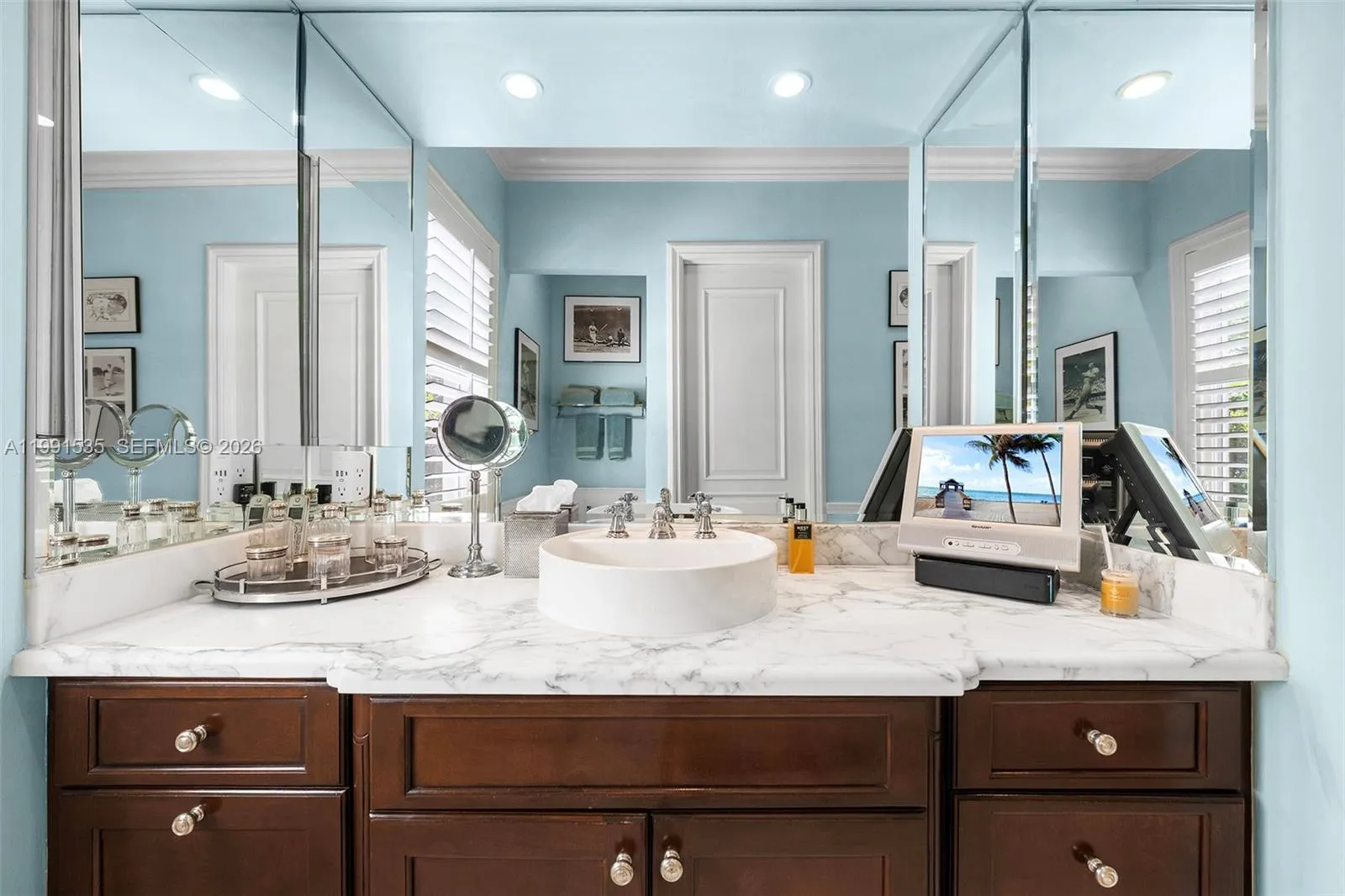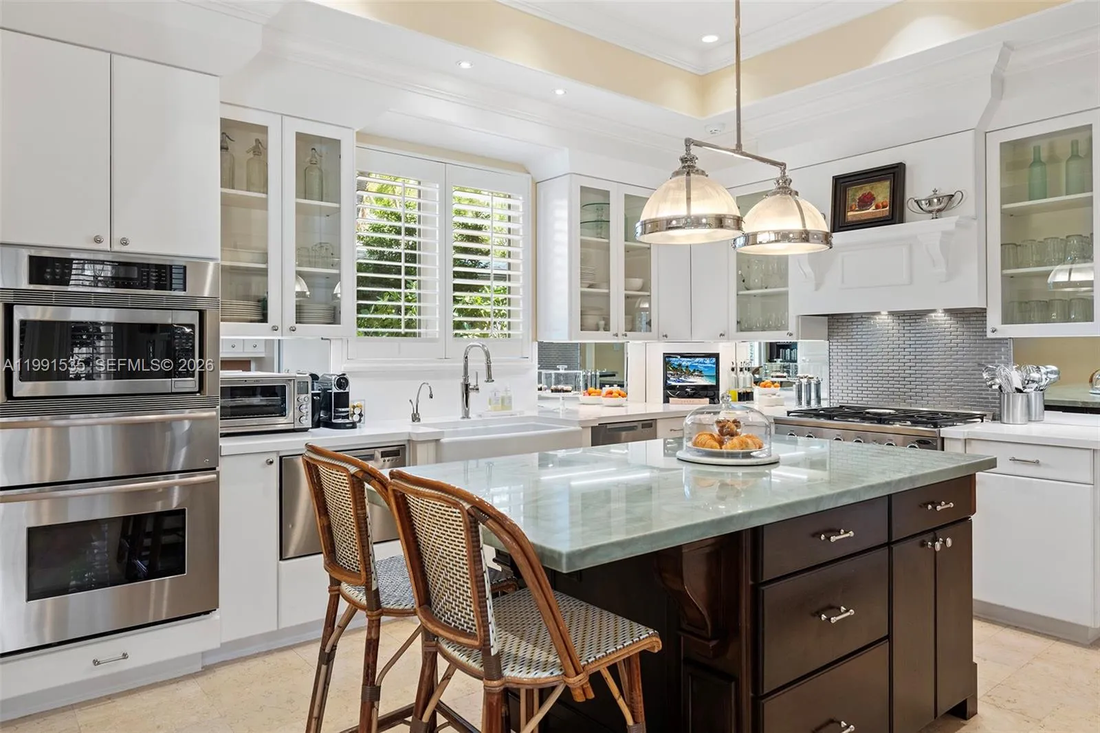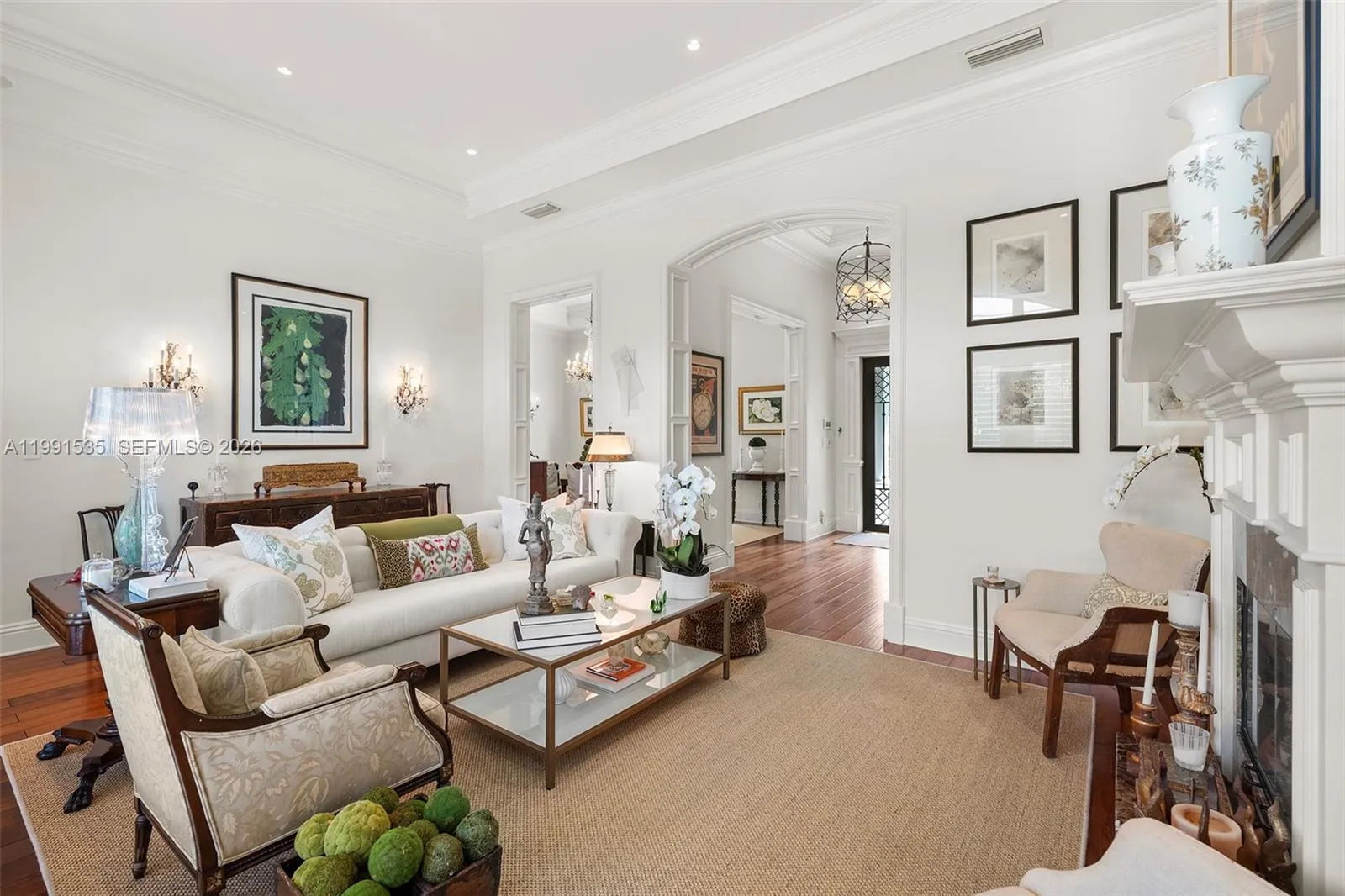 A refined and elegant designer-owned residence located in South Coral Gables. This beautifully appointed home offers 3953 sq ft of impeccably curated interiors under air on a 10,000 sq ft lushly landscaped lot. Features include, formal living room with fireplace, formal dining room, 3 bedrooms, 4 full bathrooms and 1 half bath, plus a private office, and dedicated gym. Spacious primary suite on the first floor with dual bathrooms. Open concept kitchen with breakfast nook flowing seamlessly into a comfortable gathering room, ideal for everyday living and entertaining, that opens to a pergola-covered patio perfect for a al fresco dining. The second story opens to a comfortable living area with lots of natural light, a perfect space for relaxation leading to the 2 bedrooms with ensuite baths.