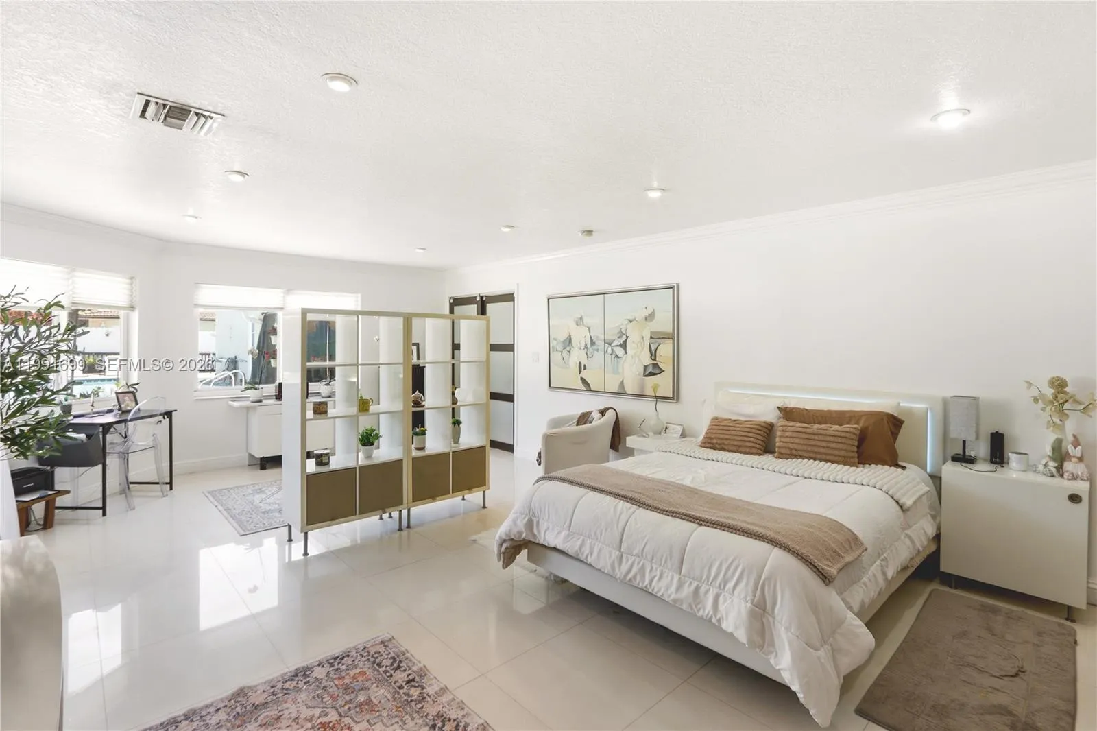 This spacious 5-bedroom, 3-bathroom residence set on an expansive ~0.4-acre lot, offering exceptional space, privacy, and comfort. A 1,250 SF addition (2008) introduces a private primary suite complete with its own A/C, spa-like bath, walk-in closet, garage, and additional storage. Interior finishes include porcelain flooring (2015) and a fully renovated bathroom (2024), complemented by multiple living and dining areas designed for both everyday living and elegant entertaining. Three terraces—including a spacious covered terrace updated in 2021—enhance the home’s indoor-outdoor lifestyle. The oversized backyard serves as a private retreat, featuring a resurfaced pool (2025), lush grounds, and two well-maintained sheds. Additional highlights include two primary suites, an oversized walk-in closet, and a side-entry garage. Nestled in a quiet, peaceful setting, this property offers the perfect balance of privacy and convenience.