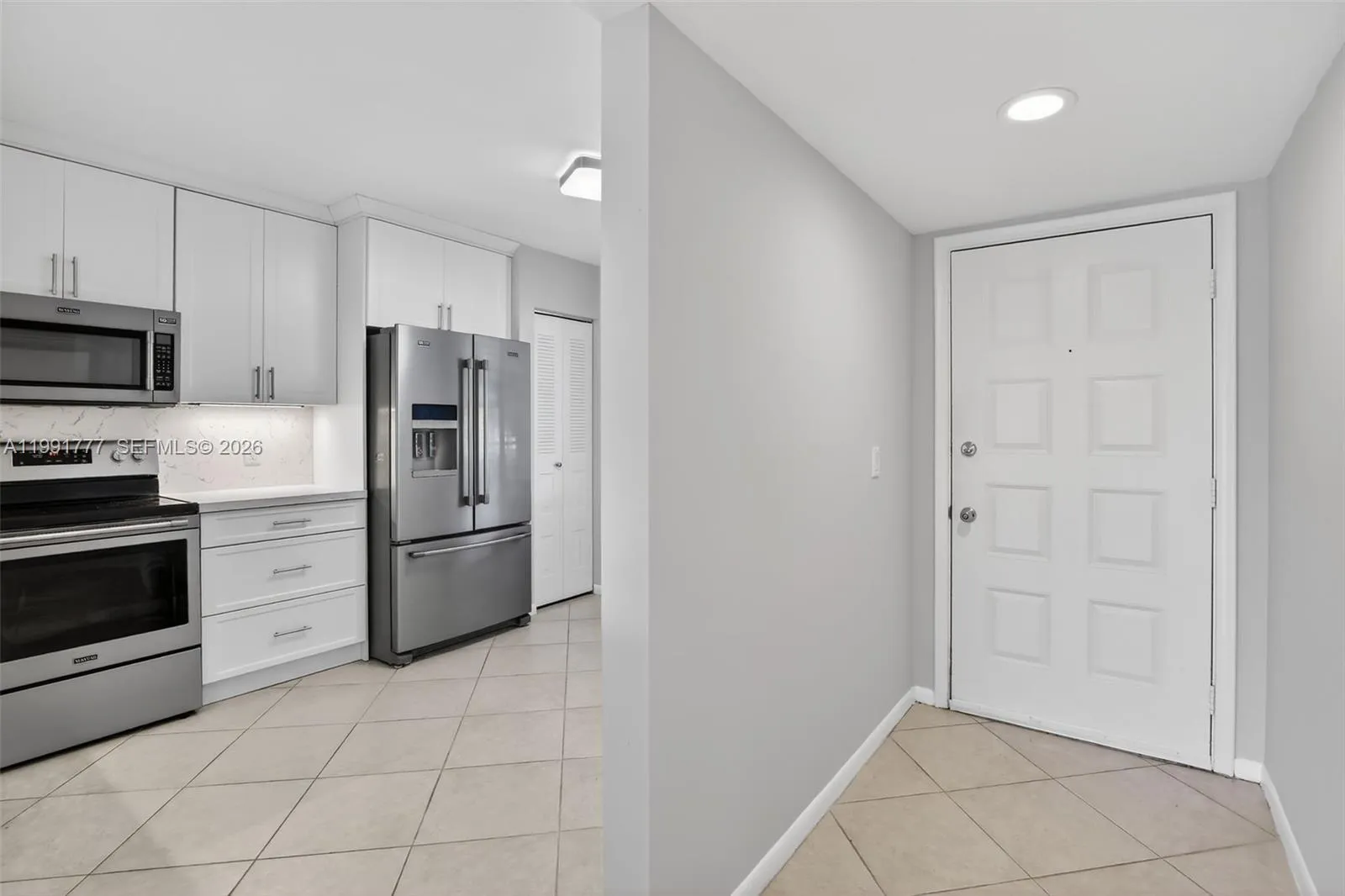 Wow—do not miss this opportunity to live in a beautifully updated 2-bedroom, 2-bathroom ground-floor condo, meticulously remodeled with contemporary design upgrades throughout. This stunning unit features white shaker cabinets, elegant granite countertops with a matching backsplash, stainless steel Maytag appliances, and tile flooring throughout the entire home. The widened pass-through creates an open and inviting layout, allowing you to enjoy seamless views from the dining area straight out to the patio. Step outside and take in a breathtaking panoramic eastern exposure overlooking the manicured golf course, lush landscaping, and one of the community’s tranquil ponds.rnDesigned for both comfort and privacy, this unit offers a peaceful, secluded feel while still being ideally located. It is nestled near the clubhouse, within walking distance to both the main clubhouse and a conveniently located satellite pool. The building itself is considered one of the best in the entire community, offering easy access to both entrances. A stackable washer and dryer are also included for added convenience.