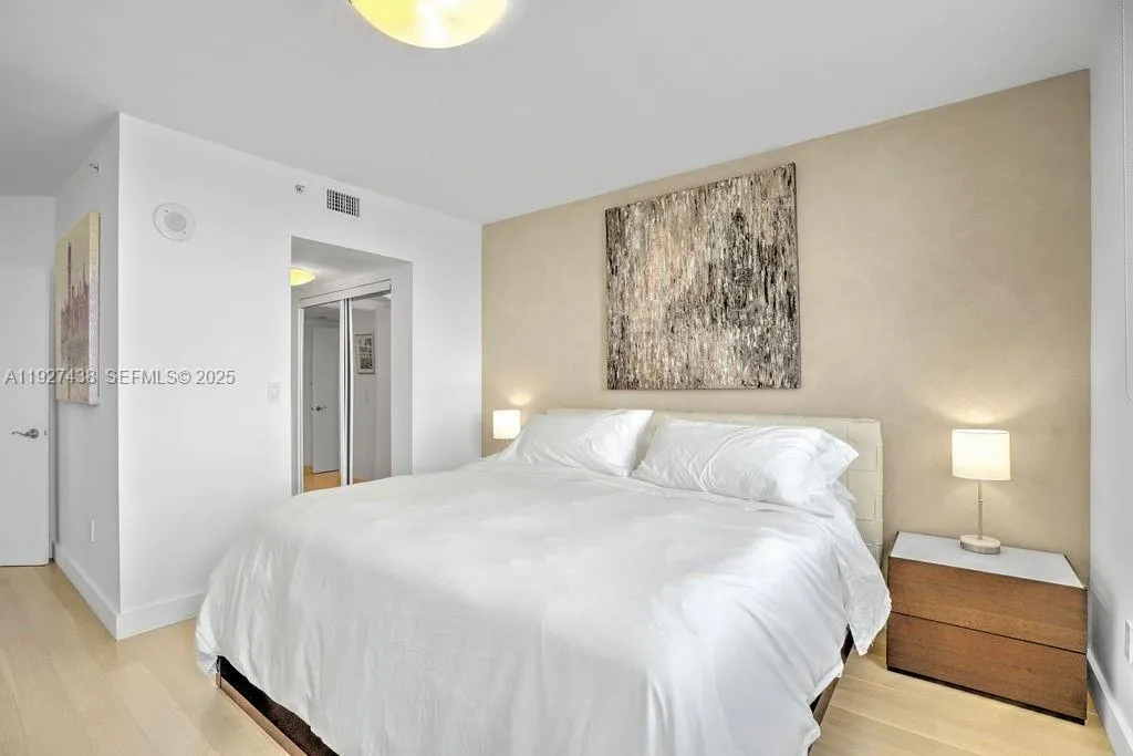 Discover this waterfront gem on Treasure Island in North Bay Village, a beautifully updated, modern spacious condo offering stunning, unobstructed water views from every room. Step onto the balcony overlooking Biscayne Bay, your perfect spot to unwind while taking in the tranquil scenery. rnrnThe home features custom specialty crafted wood planks and natural stone slabs, granite countertops, stainless steel appliances, central A/C, stacked washer and dryer, hurricane shutters and tailored roller shades in the bedroom.rnrnThis residence comes with two adjoining parking spaces and 3 double storage units fully acclimatized with A/C providing exceptional convenience, ample space and enhanced safety for your belongings. rnrnCentrally located with easy access to major roadways, downtown, beaches, shopping, schools, restaurants and more.rnrnCommunity amenities include bayside pool and lounge area, garden bay walk, and picnic-ready grassy area for outdoor enjoyment. Stay active in the professionally equipped fitness center while appreciating panoramic bay views.rnrnThis unique residence blends style, functionality and the true essence of modern island living.
