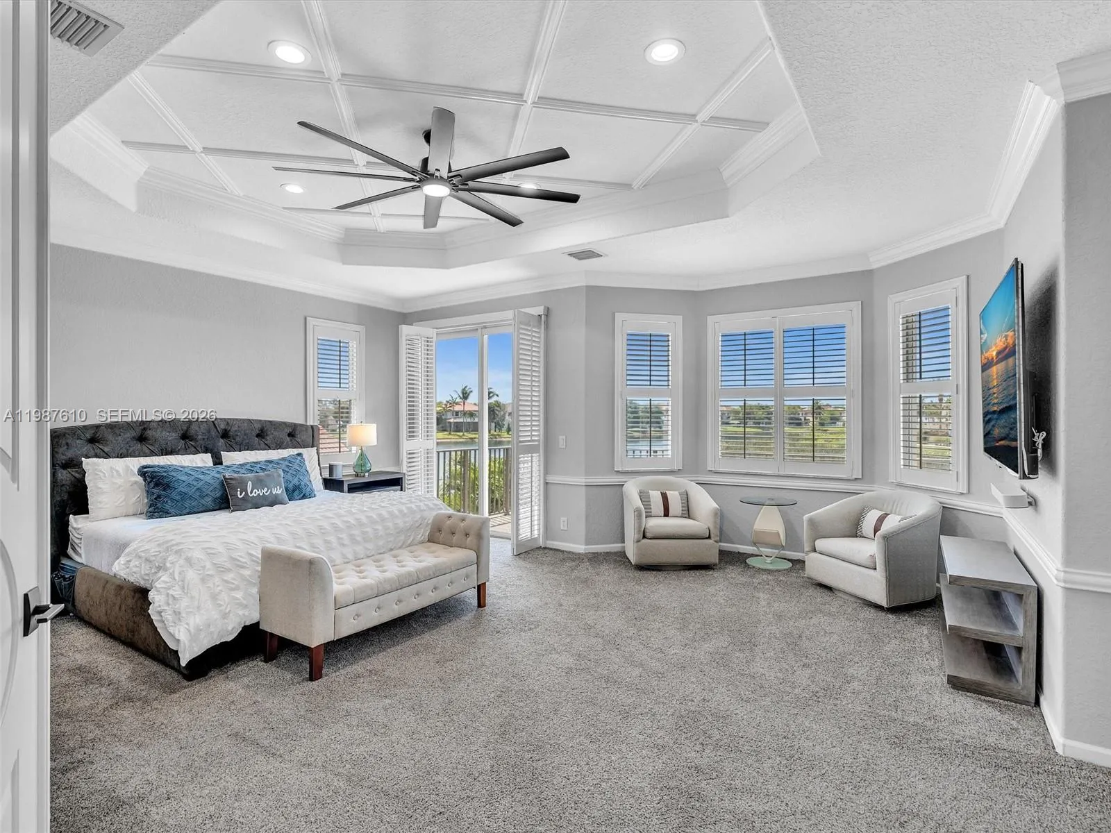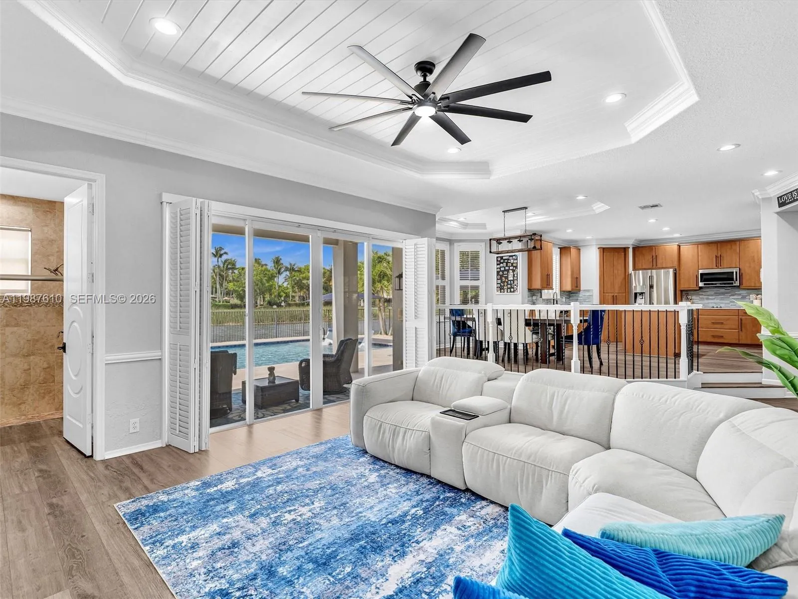 Create memories in this tastefully updated home, where design and attention to detail blend timeless style with a contemporary feel. Be captivated by this 5-bedroom residence, spacious loft and 4 bathrooms which is set on a serene WATERFRONT lot with breathtaking LAKE VIEWS. Step inside and feel the impact of the soaring 20-foot ceilings that welcome you in. The chef’s center-island kitchen, featuring quartz countertops, glass tile backsplash and stainless steel appliances, overlooks the large dining area, perfect for everyday living and entertaining. Just a few steps down, the family room offers a coffee bar and wine cooler and creates the ideal indoor space to gather with family and friends. An elegant iron-spindle staircase leads to the generous primary suite, complete w/sitting area, balcony w/wide and long water views, spa-inspired bath w/separate vanities, Kohler jetted tub, glass-enclosed shower plus his and hers 2 oversized walk-in closets. 3 bedrooms upstairs, each with built-in closets, along with a spacious 25×11.5 sq ft loft that offers a flexible use of living space. Outside relax around the stunning 36×18 POOL (2023) featuring a 6 ft sun shelf and long bench with blower jets, great for enjoying Florida’s sunshine. Additional highlights include IMPACT DOORS and WINDOWS, 3 car garage w/electric car charger, Plantation shutters, custom closets and much more! Gated community w/resort-style clubhouse, making this an amazing place to live the Florida lifestyle.