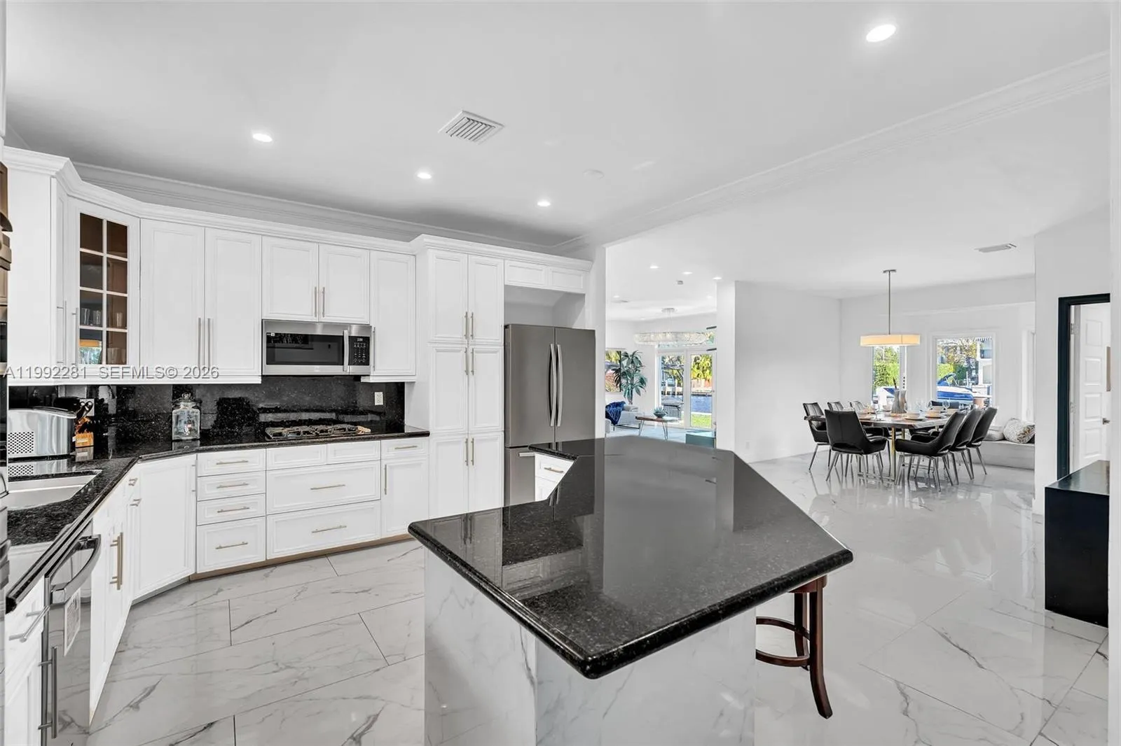 Located in the prestigious Golden Isles waterfront community, this exceptional estate offers 85’ of deepwater frontage with no fixed bridges and direct ocean access. Designed for both comfort and entertaining, this expansive 7-bedroom, 5-bath residence features a functional layout with two primary suites, spacious living areas, and an open-concept kitchen. Marble and wood flooring, impact windows, and multiple A/C zones enhance both style and efficiency. A private courtyard-style entrance welcomes you with a resort-style pool, while the backyard showcases a jacuzzi, fire pit, and stunning water views creating the ultimate outdoor experience. Boaters will appreciate the updated seawall and composite dock. Currently utilized as a successful short-term rental, this home offers excellent income potential. Additional features include a service/nanny’s room, oversized garage, circular driveway, and ample storage throughout. Ideally located just minutes from the beach, shopping, dining, and major highways, this home offers the best of South Florida waterfront living in one of the area’s most sought-after communities.