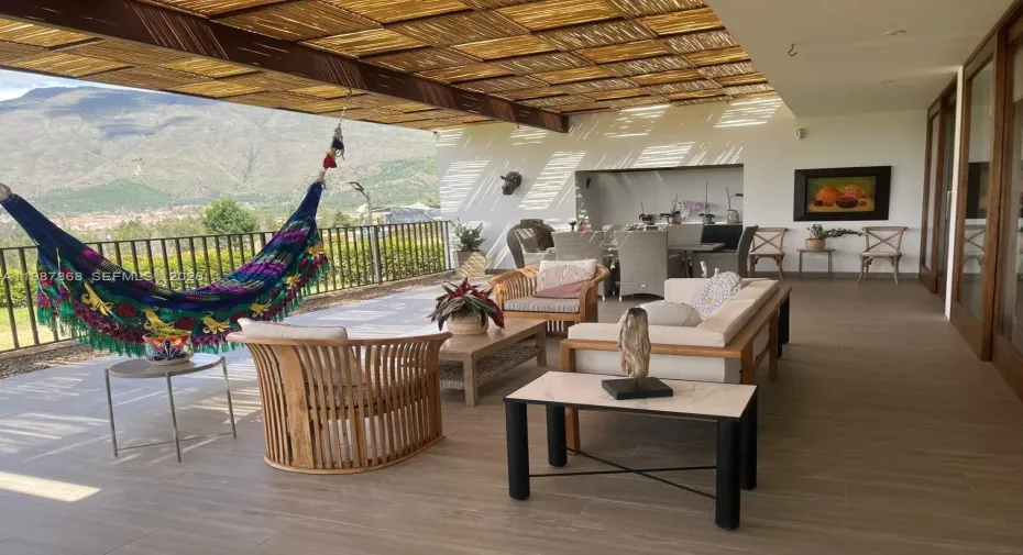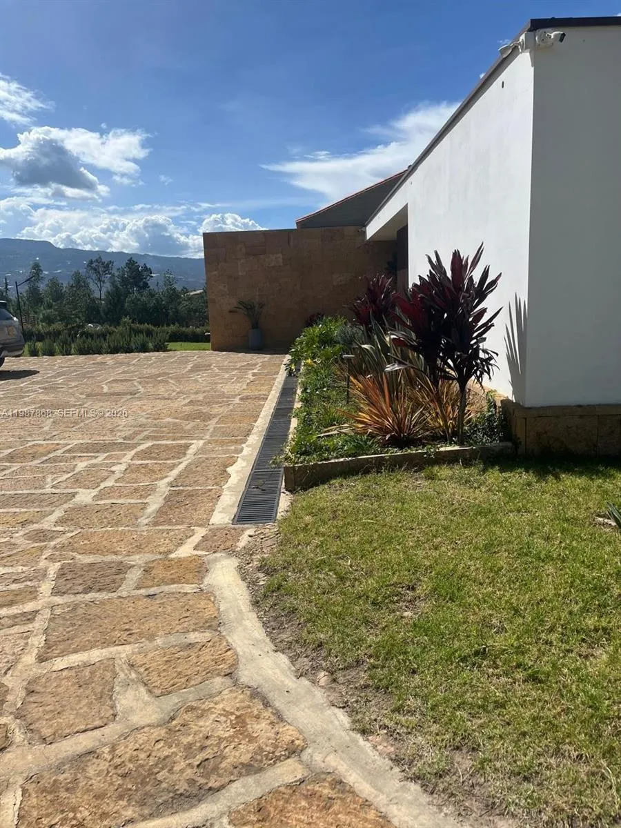 Beautiful home located in Villa de Leyva, Boyacá, Colombia, in an exclusive residential area that offers tranquility, privacy, and a privileged view of the town.rnrnThe property sits on a spacious 10,764 sqft lot, with 3,014 sqft of built area distributed over two levels. Its elevated location allows for stunning views and abundant natural light.rnrnThe home features:rnrnTwo-story functional and elegant designrnLarge windows that provide natural light and a strong connection to the surroundingsrnHigh-quality wood and ceramic flooringrnEco-friendly kitchenrnElectronic lighting systemrnSecurity system with video camerasrnElectric gatesrnParking space for up to 6 vehiclesrnrnAn ideal property for those seeking comfort, security, and a unique connection with nature in one of Colombia’s most charming destinations.