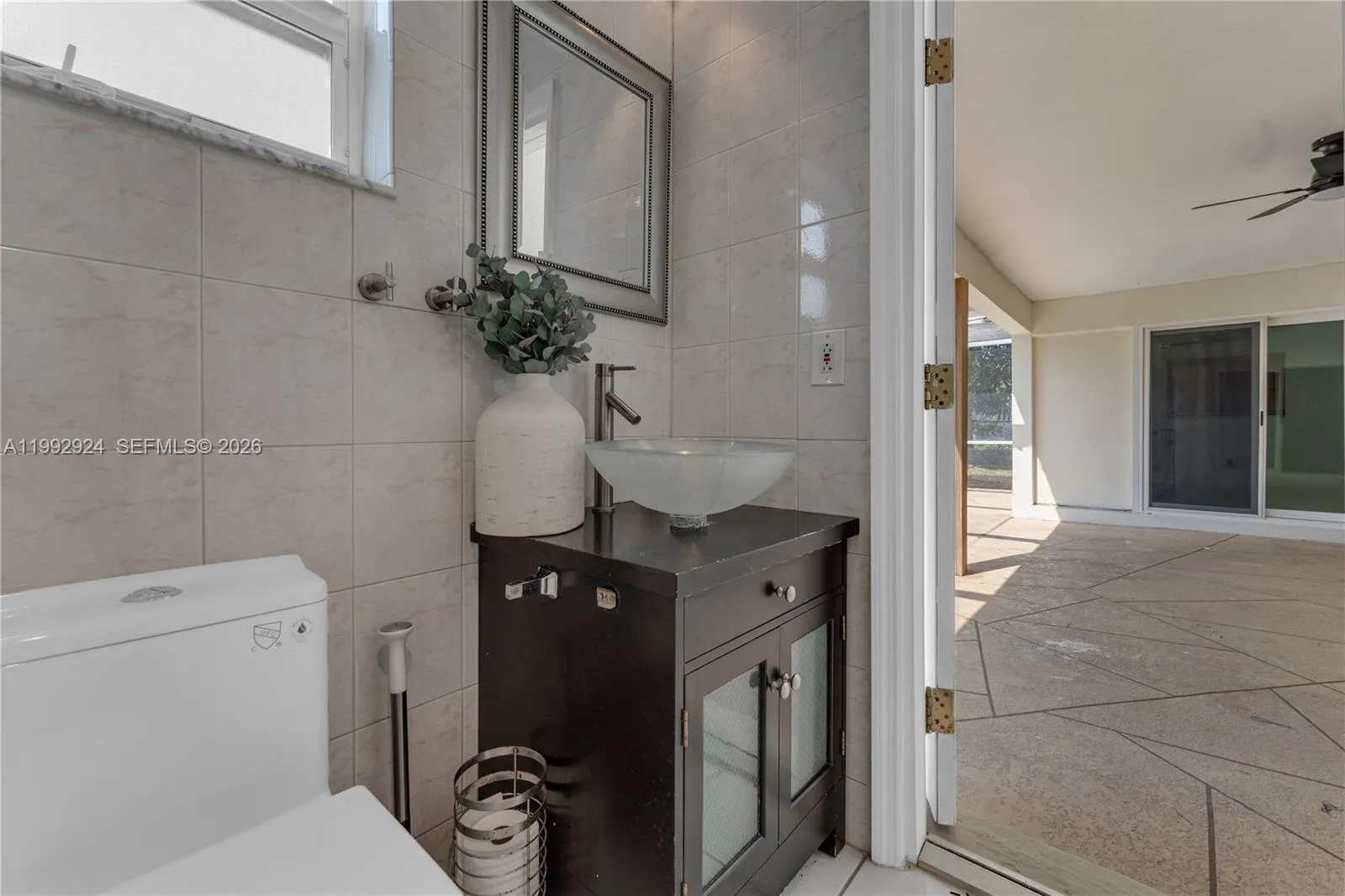 In the heart of Margate, your new home awaits! Step inside to an open floor plan with stunning marble tile throughout. This spacious layout features 3 bedrooms, including two primary suites, each with its own beautifully updated bathroom. The custom-built kitchen boasts granite countertops, wood cabinets, stainless steel appliances, and a wine cooler—perfect for entertaining. Enjoy peace of mind with impact windows and doors, recessed lighting, and an abundance of natural light. Step outside to your private oasis: a fully screened-in pool surrounded by ample yard space, ideal for outdoor gatherings and relaxation. Conveniently located near top-rated schools, shopping, dining, and major highways. No HOA!