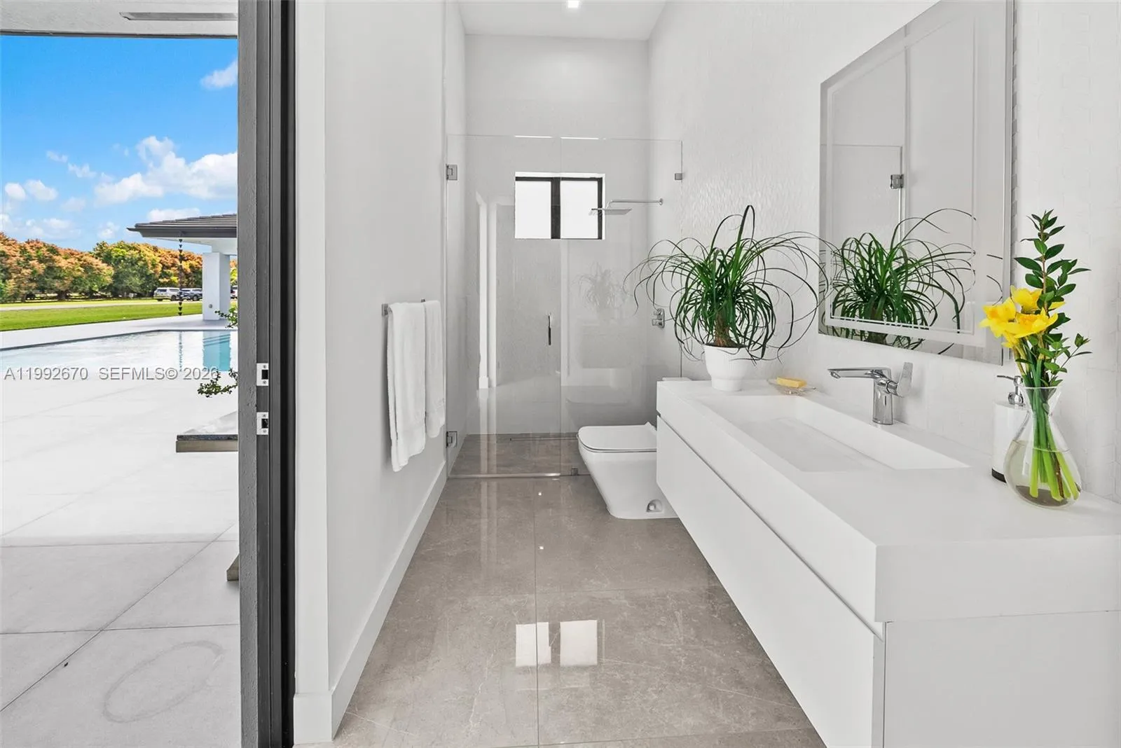 Welcome to Hacienda Moderna – a rare offering that blends 21st-century luxury with expansive countryside living. Set on 7.5 acres, this exceptional estate features an income-producing mango grove with over 300 trees, complemented by a diverse collection of fruit trees including avocado, mamey, lime, tamarind, soursop, sugar apple, plum, banana, & coconut. Here, you can truly disconnect & immerse yourself in the beauty & tranquility of nature. At the heart of the property lies a stunning contemporary one-story home built in 2021. With 4 bedrooms & 5 full baths, the home offers an ideal floor plan w/ formal living & dining rms, spacious open-concept family rm, luxurious private master suite, & state-of-the-art kitchen. Additional highlights include high ceilings, elegant porcelain tile flooring, full impact windows/doors & 2-car garage. Designed for exceptional outdoor living & entertaining, the property features a large pool & jacuzzi + an impressive 2,400 sq ft covered terrace w/ summer kitchen including grill, burner, refrigerator, icemaker, dishwasher, & cabana bath. The estate is fully secured, accessed through electric gates that open to a long brick driveway & porte-cochère + separate service entrance. The expansive grounds offer endless opportunities for agricultural, farming, or landscaping pursuits. Ideally located just west of Krome Avenue, Hacienda Moderna offers convenient access to local nurseries, fruit stands, and the best of South Miami-Dade attractions.