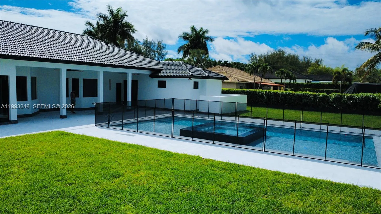Modern Miami Single Family House in Cristina States. Enjoy luxury features in this beautifully designed house ready to move in. Large patio with space for boats, RVs or any other toys. Lots of Interior area under AC with 5 bedrooms and 3.5 baths plus a 2 cars Garage. Enter into a 12 ft high ceiling with an open concept layout. New large modern Pool. This Miami home was built with lots of attention to detail and with top-of-the-line products that warranties quality and functionality. Swimming area in the pool is 40 ft long and heated pool, w/ salt system with lots of entertainment area, the spa / hydromassage fits 8 people with a beautiful overflow 360 degrees waterfall. New Impact Windows and doors. Security System, large pivot entry door with face recognition system. Cameras all around. The kitchen is very big and modern with luxurious style. The floor is 48×48 Spanish tile in this one level house with No HOA and located in one of the most desirable neighborhoods in the area in Miami, Florida. Driveway fits easily 10+ cars. Owner Agent, Easy to Show .