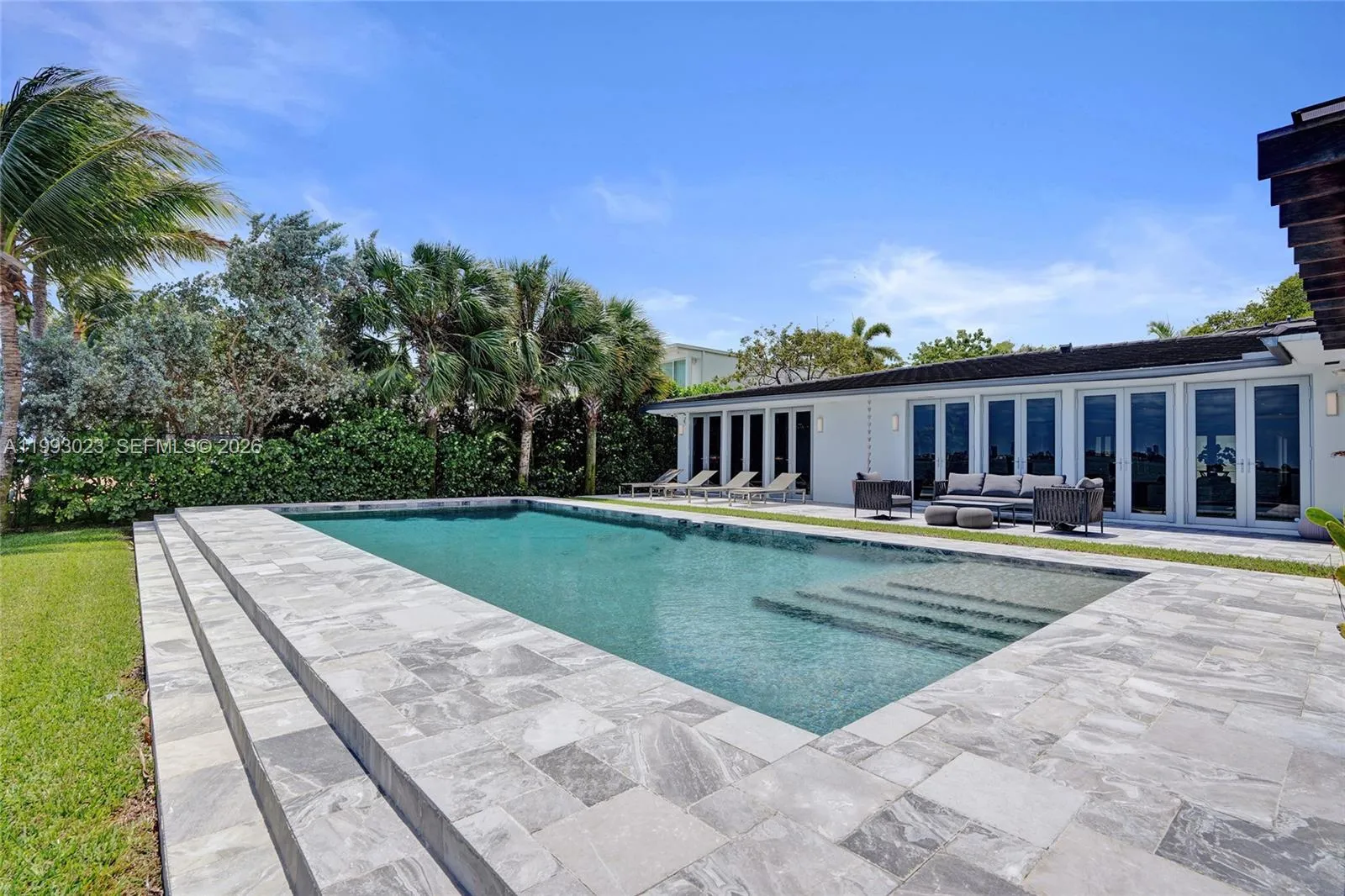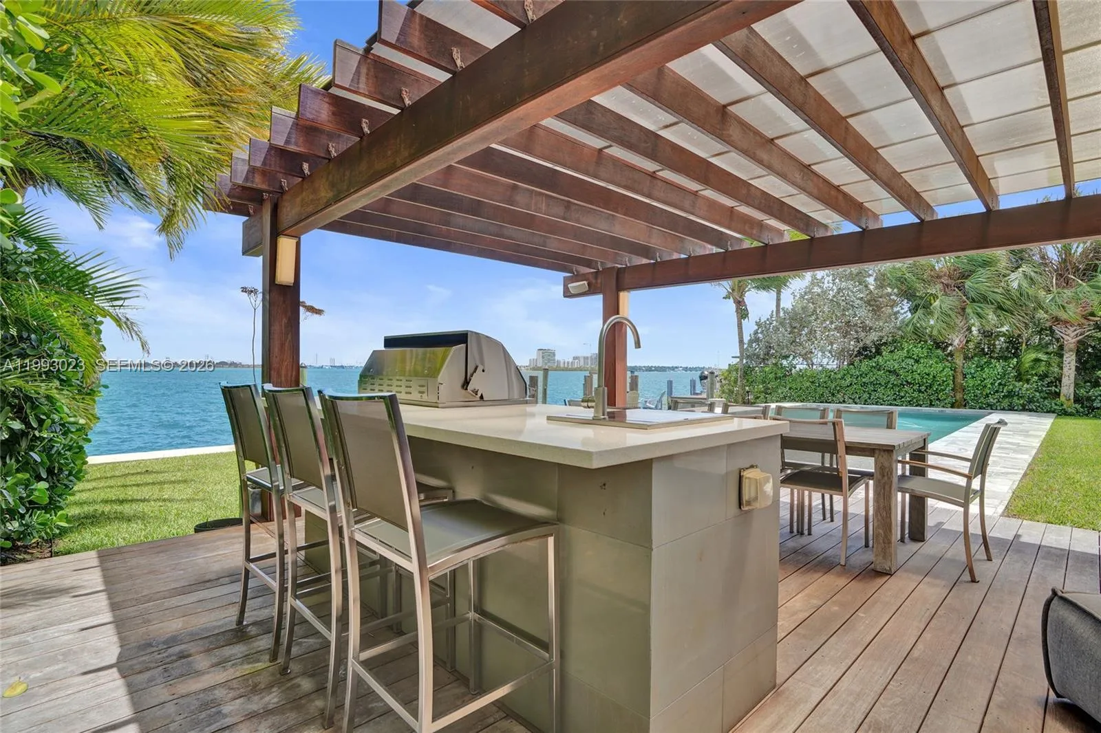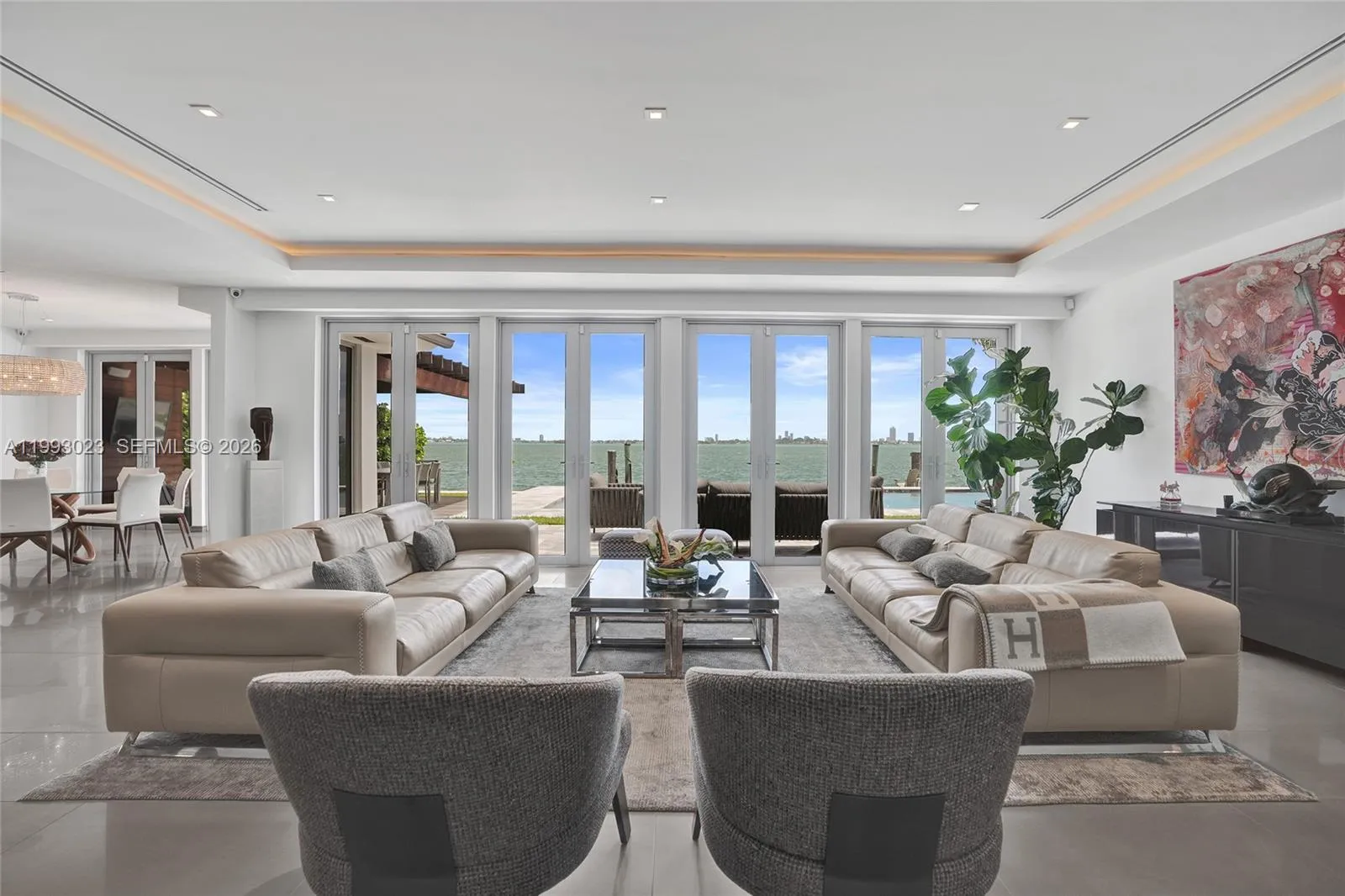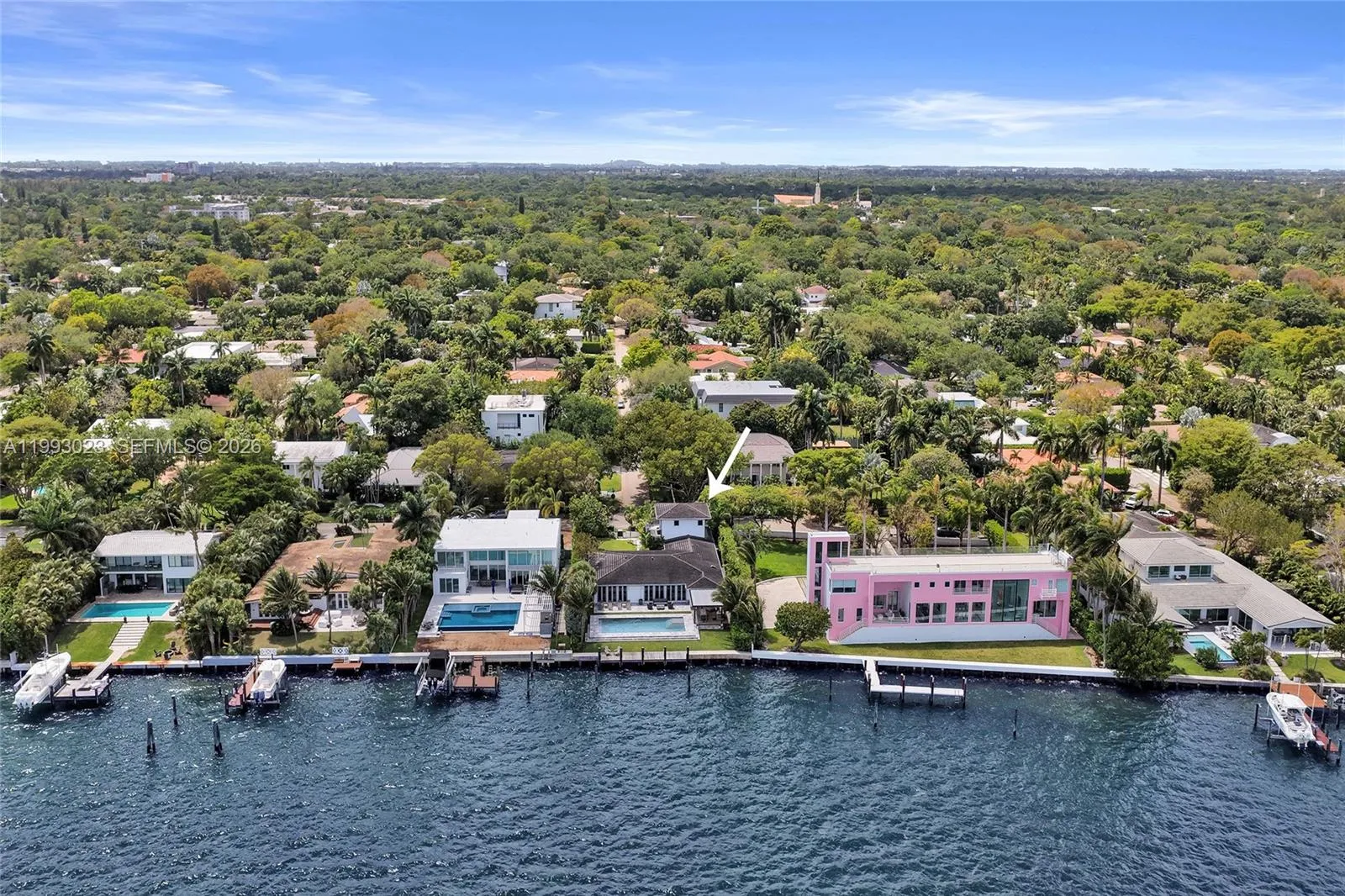 Experience the pinnacle of bayfront living in this meticulously rebuilt 2017 modern residence. Offering 4 bedrooms, 4.5 bathrooms, and a versatile flex space ideal as an office or additional bedroom, this home blends refined design with effortless functionality. Enjoy 84 feet of pristine waterfront with sweeping, unobstructed views of Biscayne Bay, where both sunrise and sunset are breathtaking. No detail was spared, featuring grey limestone and marble floors and a bespoke chef’s kitchen with Sub-Zero and Wolf appliances.rnSmart home features include integrated lighting, Sonos sound, electronic blackout shades, and a full-house generator. Gated and lushly landscaped for privacy, the outdoor living is exceptional, with a resort-style pool, summer kitchen, and a custom teak pergola. A private dock enhances the waterfront lifestyle. rnLocated in East Miami Shores, a charming golf course community just minutes from the Design District, Wynwood, Bal Harbour, and Miami Beach, this is a rare offering of design, privacy, and premier bayfront living.