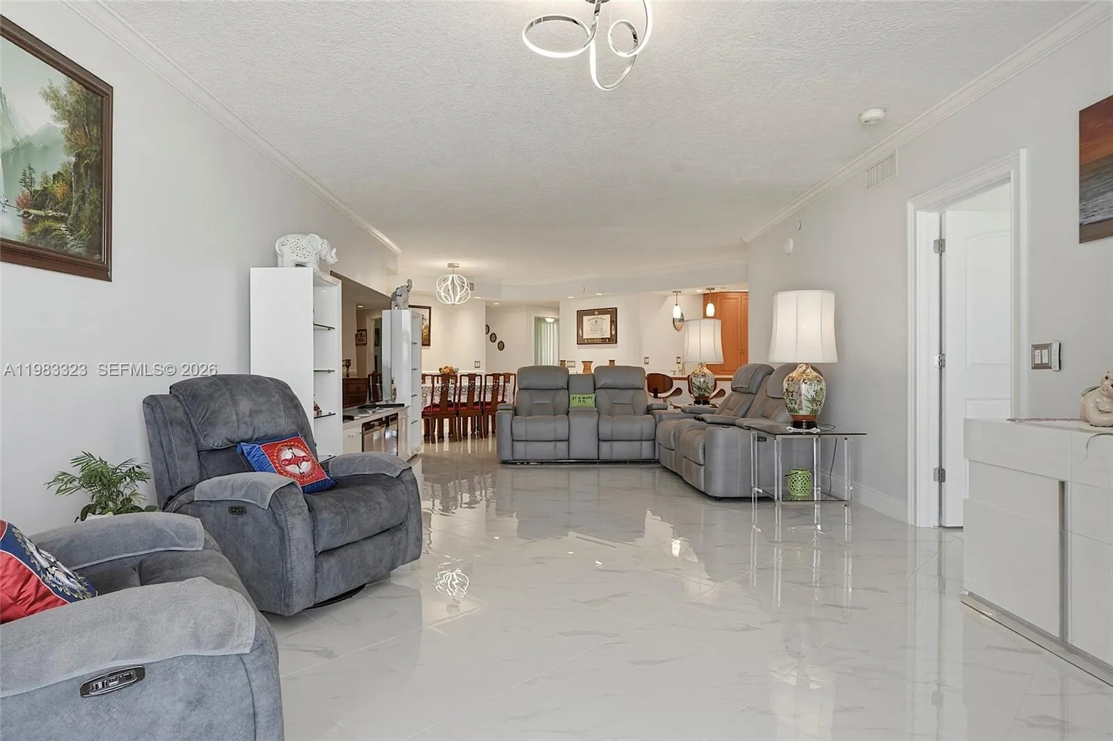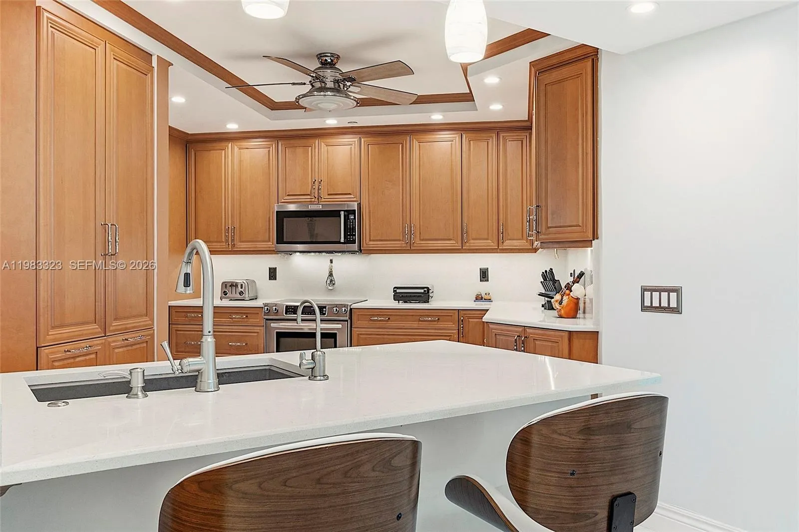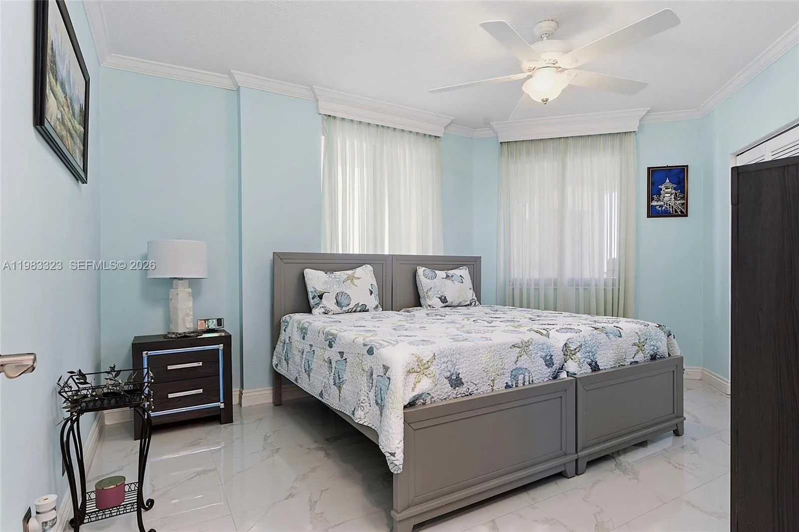 Welcome to Tiara Towers on North Hutchinson Island, where luxury meets breathtaking 14th-floor views. This exceptional 3BR/2BA condo offers nearly 1,900 sf under air, 9-ft ceilings, and stunning east and west exposures—enjoy sunrises over the Atlantic and sunsets over the Indian River.rnrnMeticulously maintained with a spacious open layout and private ocean-view balcony. Kitchen features granite counters & backsplash, custom soft-close cabinetry, stainless steel appliances, and floor-to-ceiling pantry.rnrnElegant finishes include crown molding, sculpted baseboards, solid core doors, and recessed LED lighting. Primary suite with custom closets and updated bath with dual sinks, granite counters, and glass shower. Guest bedrooms overlook the river; guest bath updated.rnrnUpgrades: newer A/C (2020), water heater & Bosch dishwasher (2024), impact doors/windows, full hurricane protection, enclosed garage with storage. Move-in ready with stunning views and high-end finishes. No expense was spared – truly a must see!