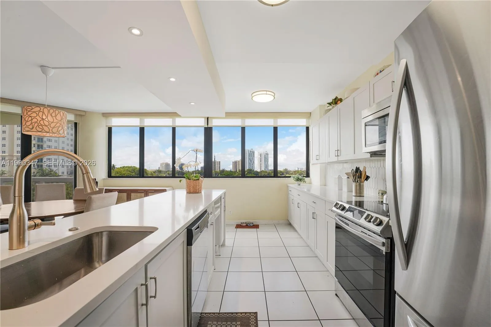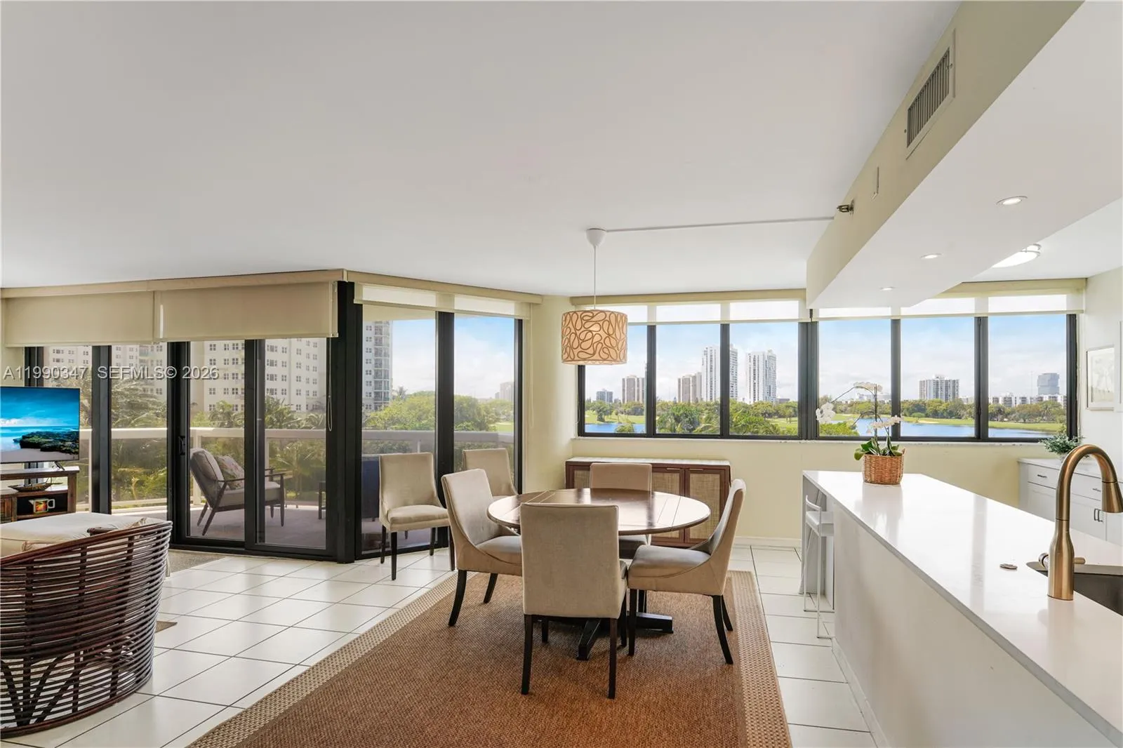 Beautiful and bright 2-bedroom, 2-bathroom condo with serene lake and golf course views overlooking the prestigious Turnberry Golf Course. This spacious residence features a desirable split floor plan and a wrap-around balcony that enhances natural light throughout the living spaces.rnThe open kitchen is equipped with new appliances and flows seamlessly into the living and dining areas, ideal for both everyday living and entertaining. The unit also includes a washer and dryer inside for added convenience.rnAdditional upgrades include newly installed high-impact windows and a newer A/C unit (approximately one year old). Two assigned covered garage parking spaces are included, along with valet service available for guests. Cable is included in the rent. rnResidents enjoy access to resort-style amenities, including a fitness center, swimming pool, sauna, tennis courts, and BBQ area. Ideally located just minutes from Aventura Mall, with easy access to dining, shopping, and entertainment. Scenic walking and jogging trails surround the golf course, offering a peaceful and active lifestyle.rnrnThe association requires $1.000 security deposit for the building. This deposit is additional to the First, Last and Security required by owner.rnPLEASE TEXT OWNER first for appointment. Thank you